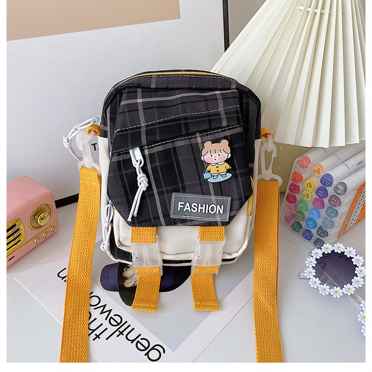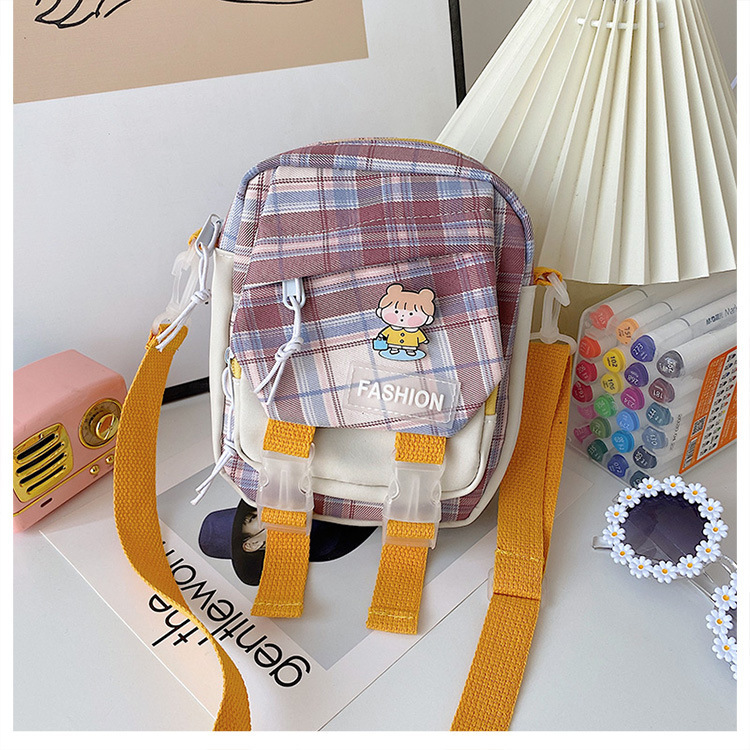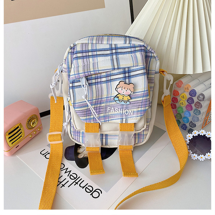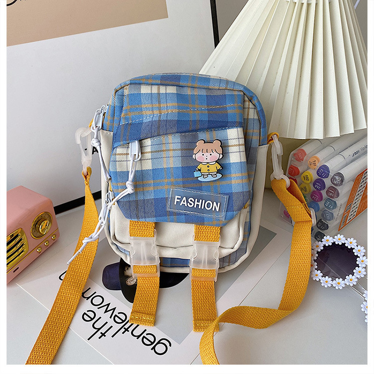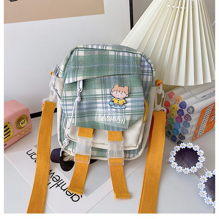 校园风小清新帆布格子甜美少女学生单肩斜挎包手机零钱小方包