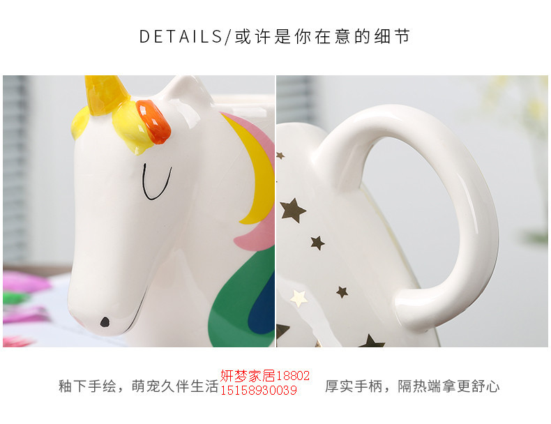 软萌可爱少女心陶瓷杯子独角兽彩虹马猫咪卡通马克杯家用牛奶杯女