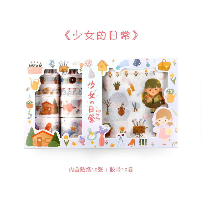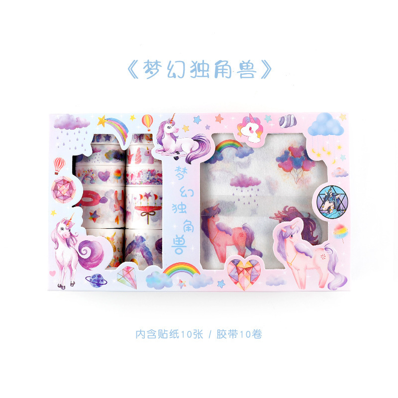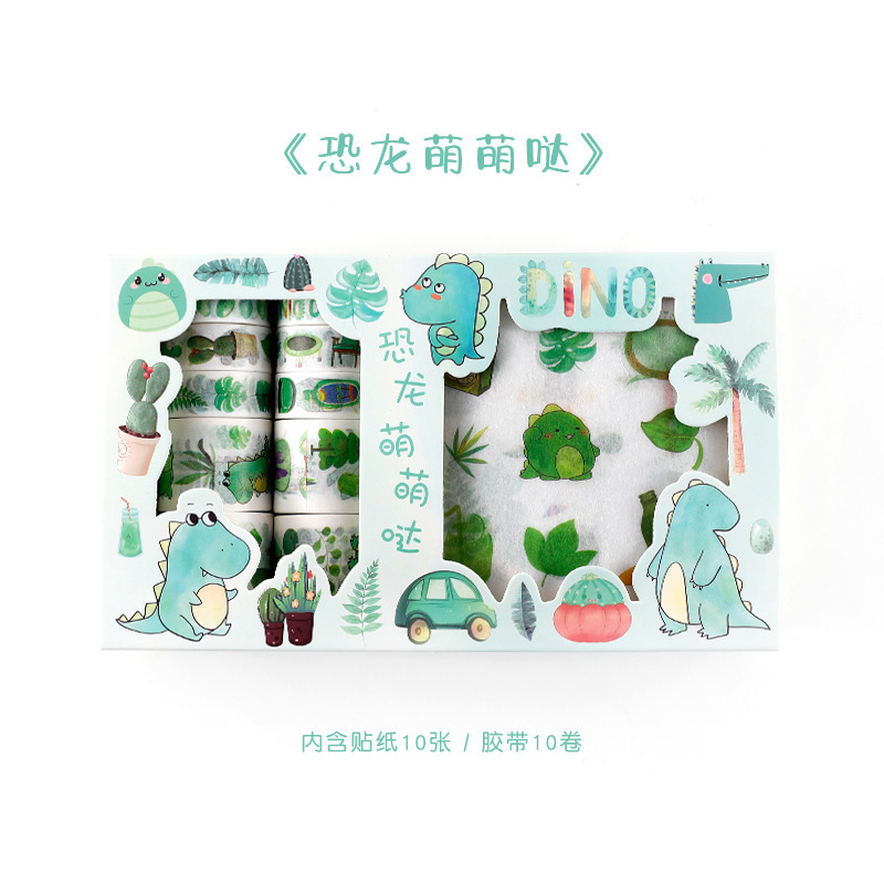手账贴纸胶带组合装 恐龙女孩少女心DIY装饰和纸素材礼盒装礼品