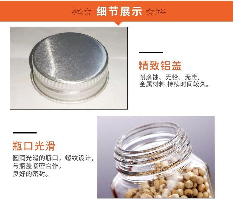 | Glass Spice Jar [Double-Layer Cover Can Be Sealed: 5 Packs(玻璃调料瓶【双层盖可密封:5个装) | USD $1.55 | 1000 piece available |