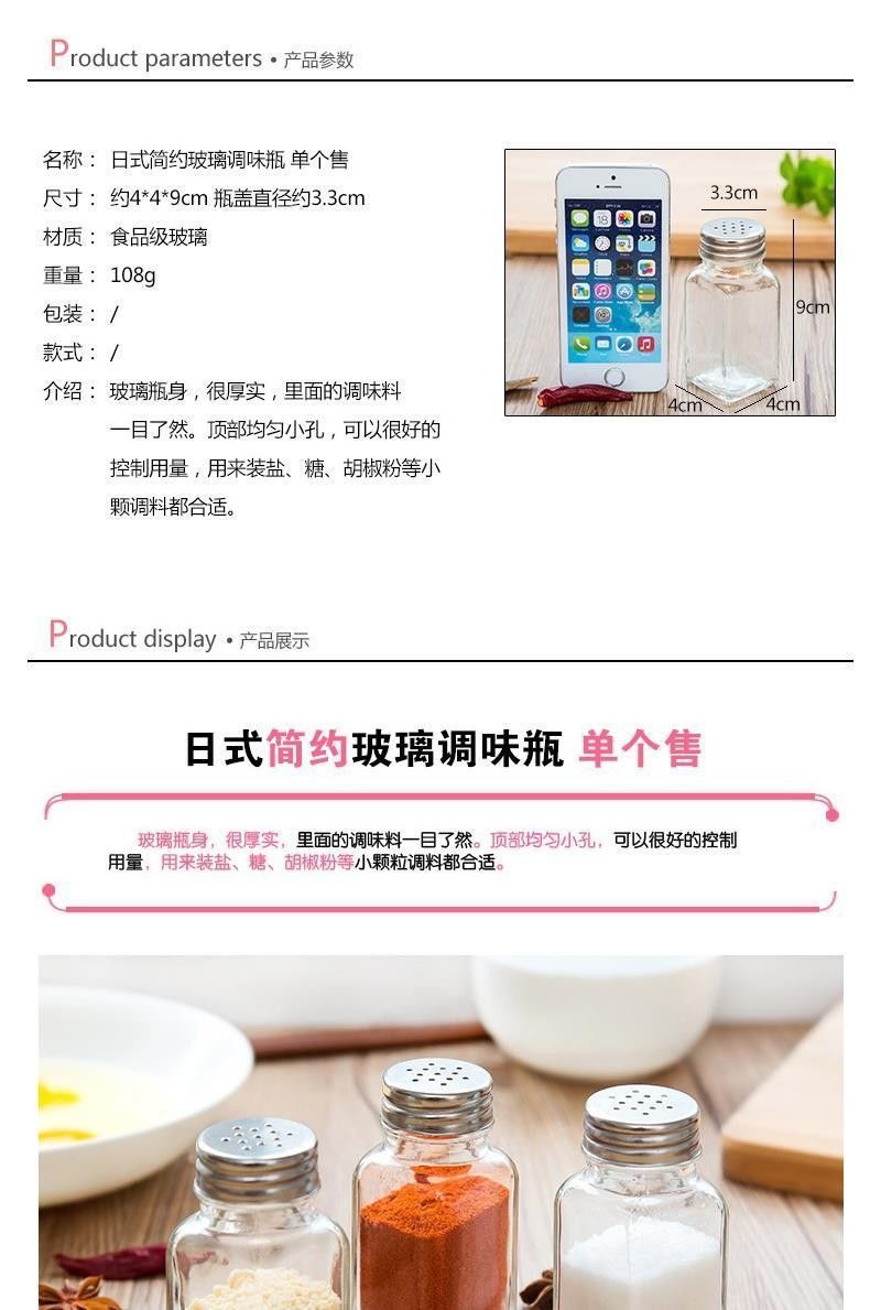 | Glass Seasoning Bottle [Single-Layer Lid Not Sealed: 5 Packs(玻璃调味瓶【单层盖不密封:5个装) | USD $1.55 | 1000 piece available |