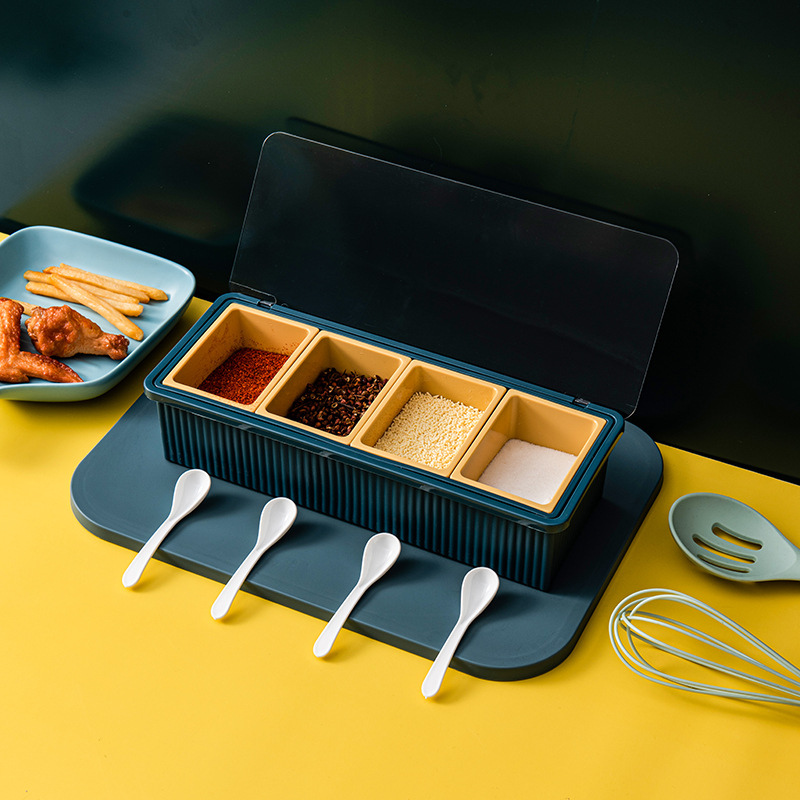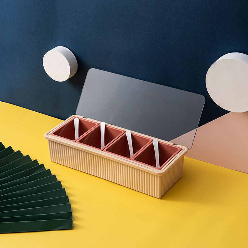 调料盒四格一体多格组合佐料盒收纳盒厨房用品调味材料盒子