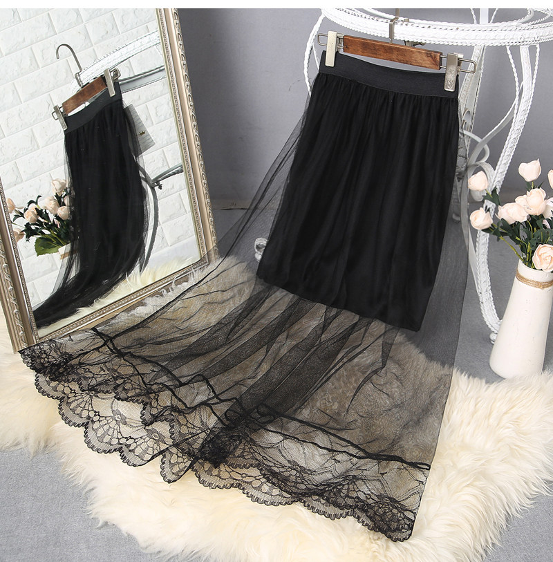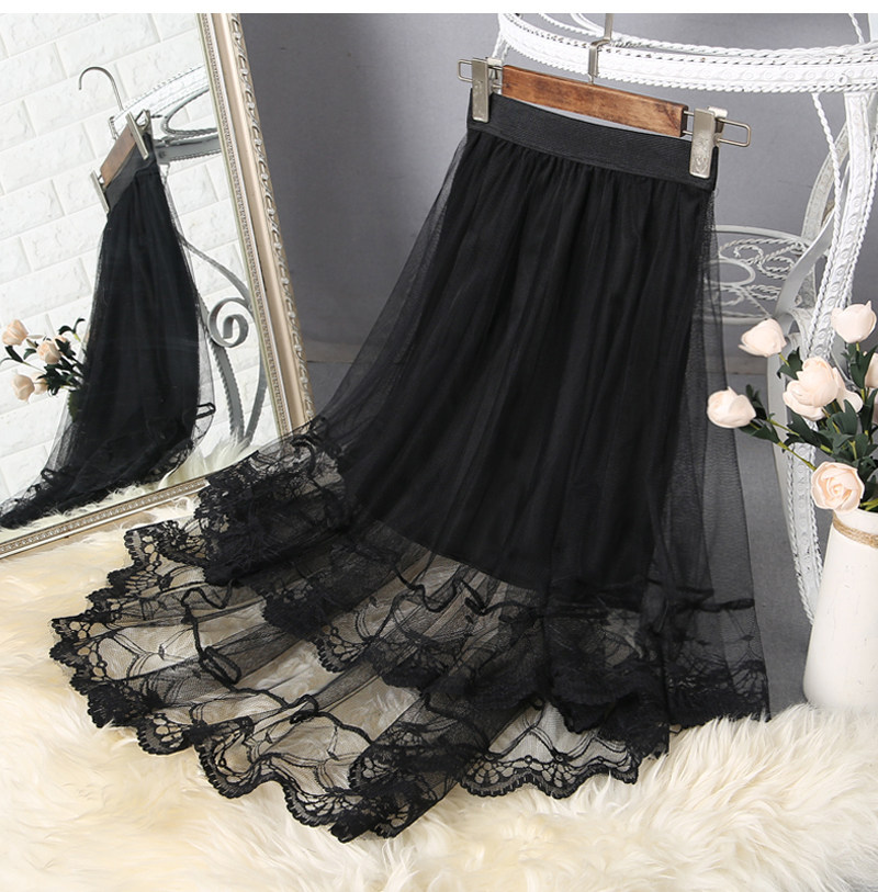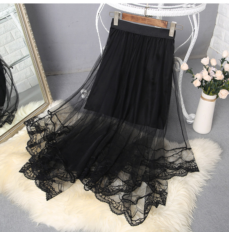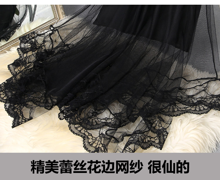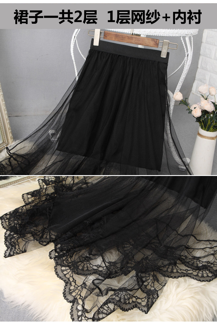 纱裙半身裙女夏季显瘦不规则a字中长款黑色超仙网纱裙子