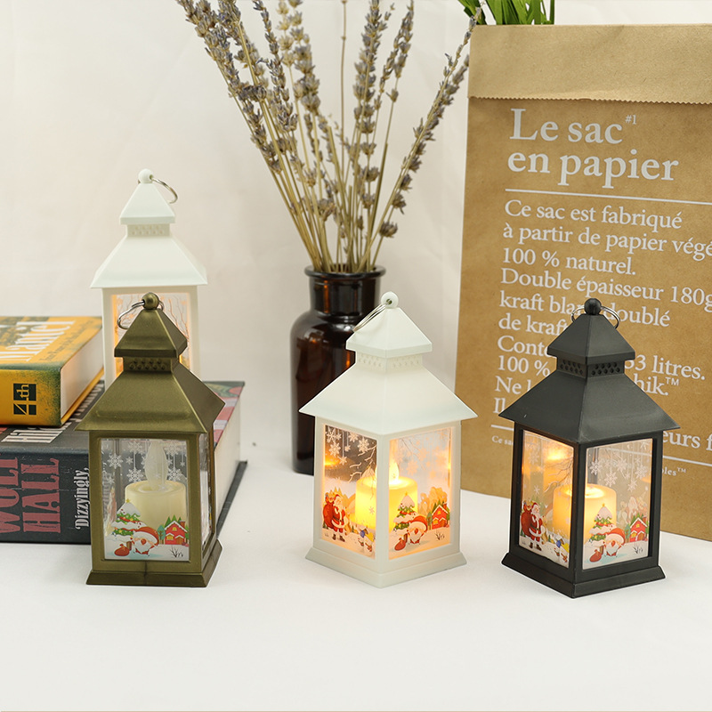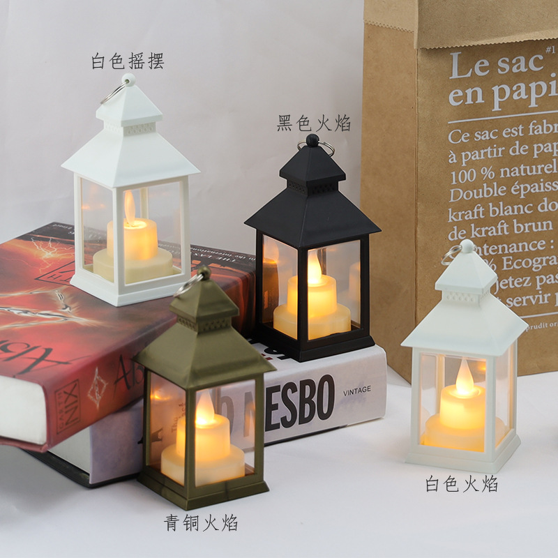 跨境批发火焰方形风灯圣诞节装饰仿真led小台灯橱窗场景挂饰摆件