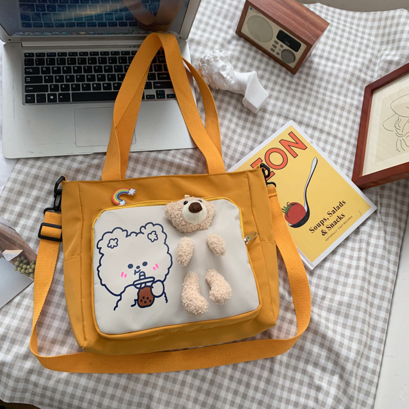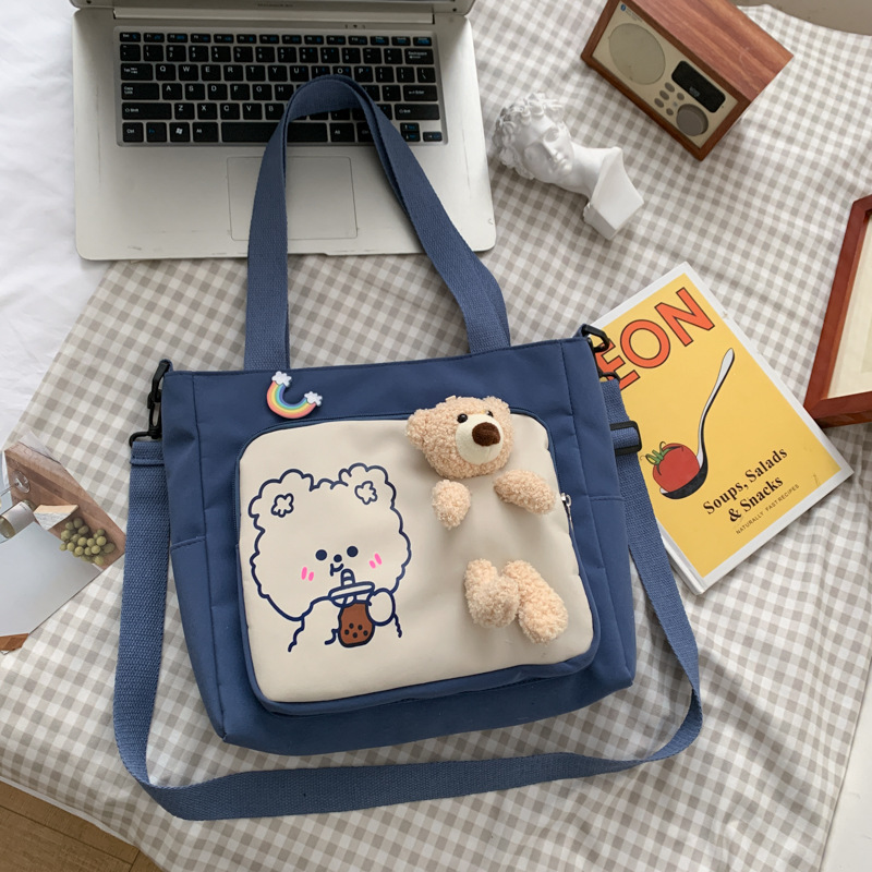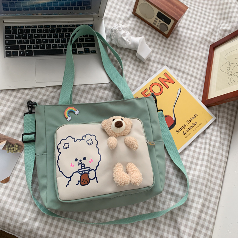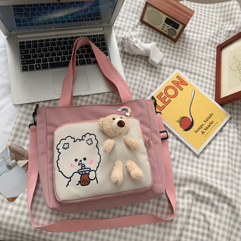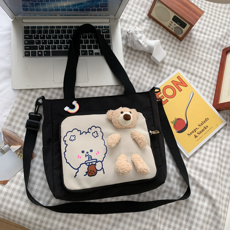 可爱卡通帆布包包女新款单肩大包学生校园斜挎书包