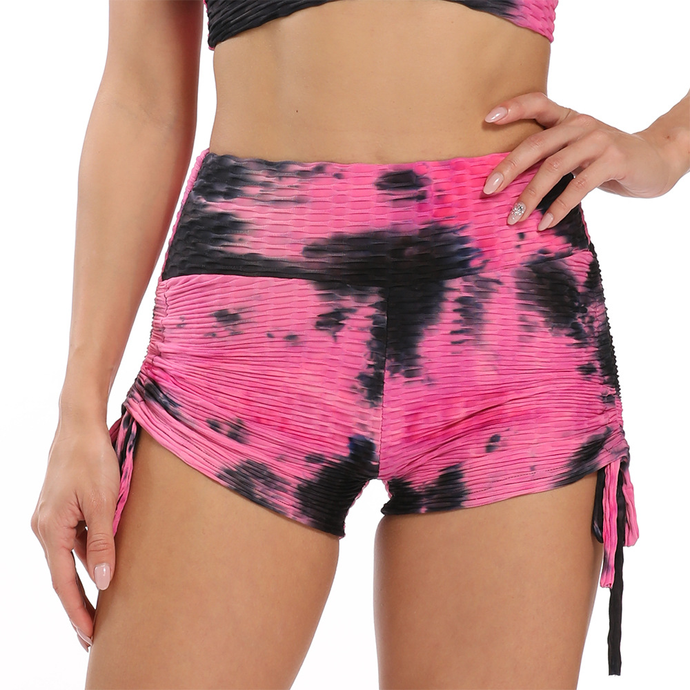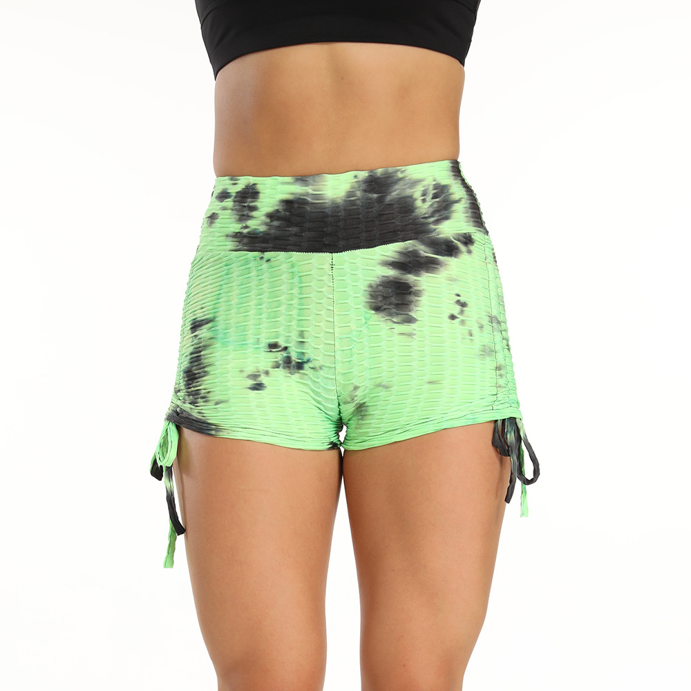 亚马逊欧美热销新款潮流提花扎染泡泡抽绳健身运动短裤瑜伽裤女