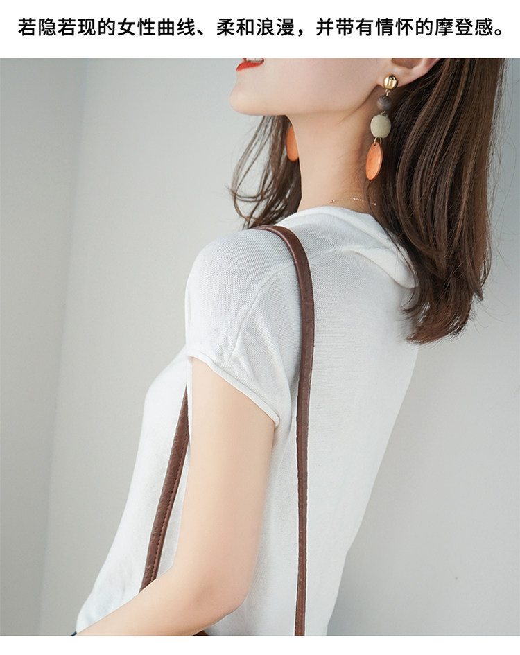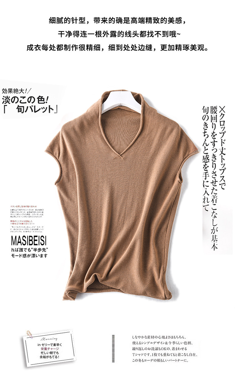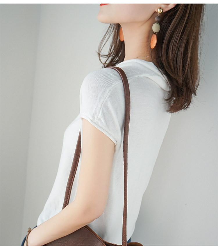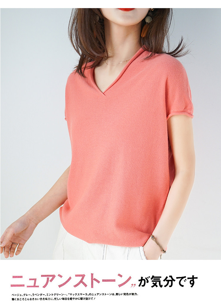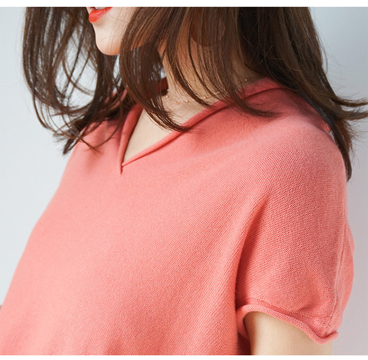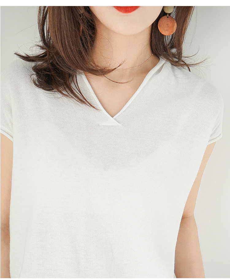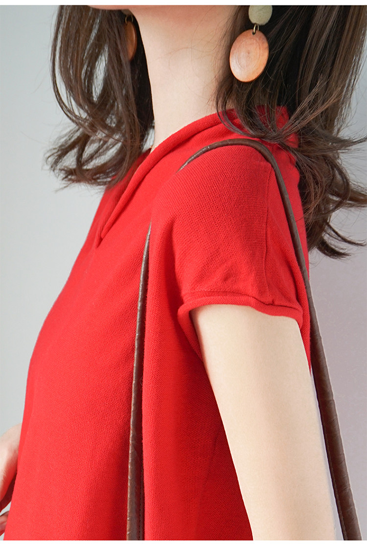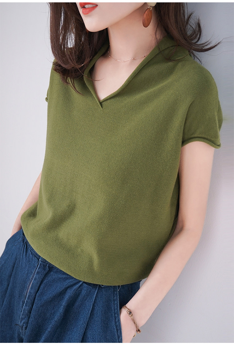 夏装新款棉麻针织短袖女宽松T恤半袖V领纯色女装上衣打底衫潮