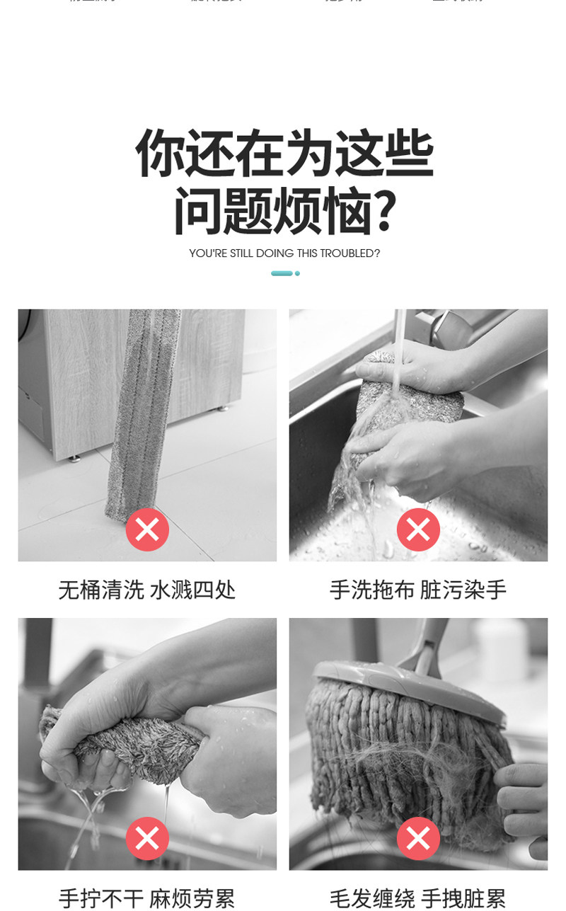 网红平板拖把刮刮乐双边扣懒人大号抖音免手洗挤水拖地神器一拖净