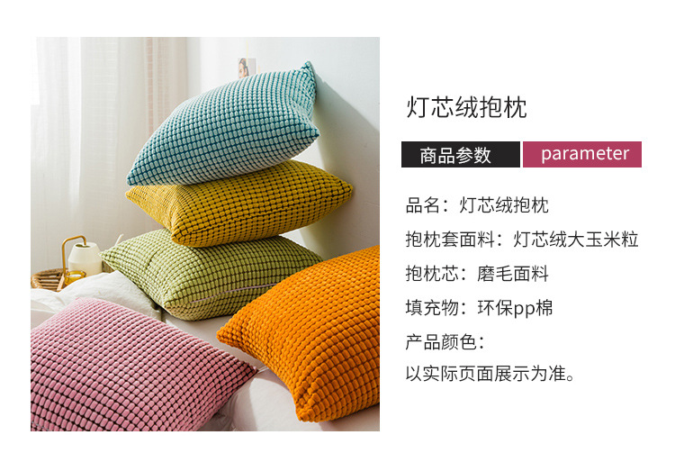 YL101玉米粒抱枕纯色灯芯绒靠垫靠枕沙发靠背垫办公室腰靠批发
