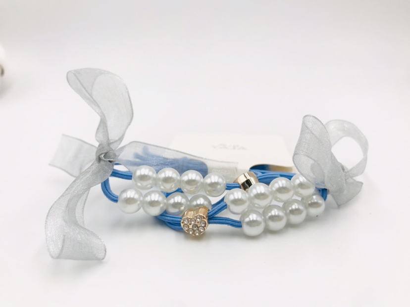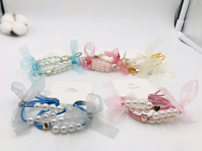 珍珠飘带纱头绳发圈发绳皮筋学生成人马尾扎高弹皮套 头饰发饰
