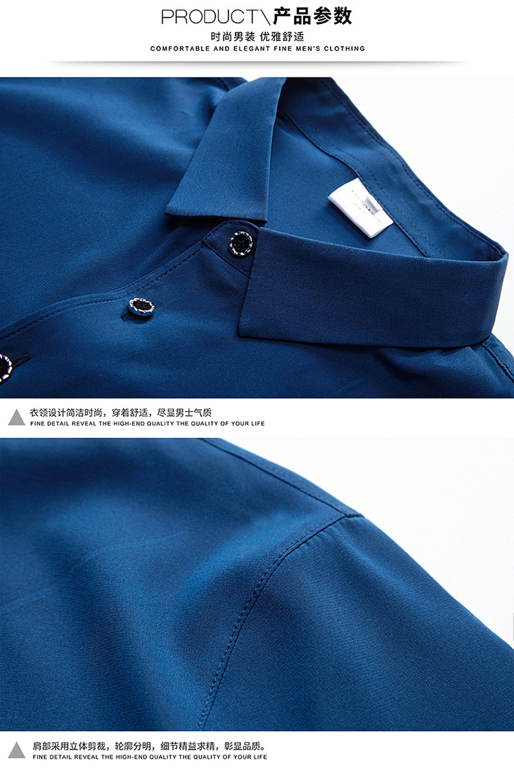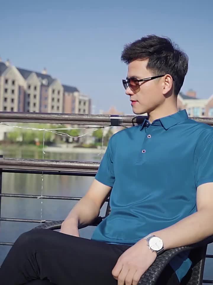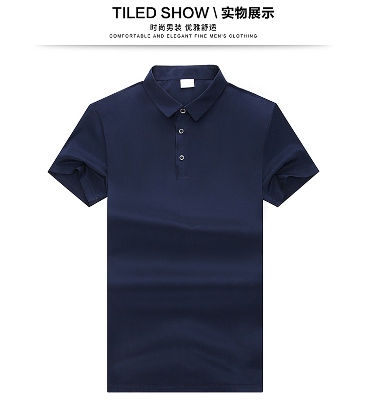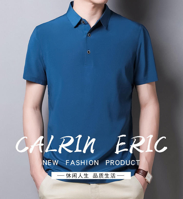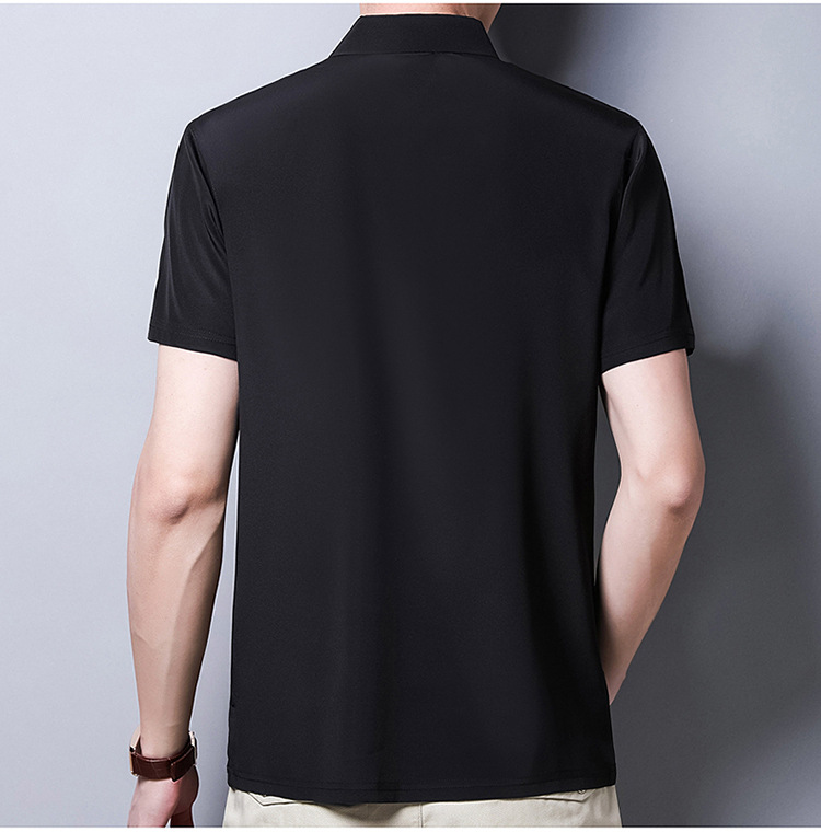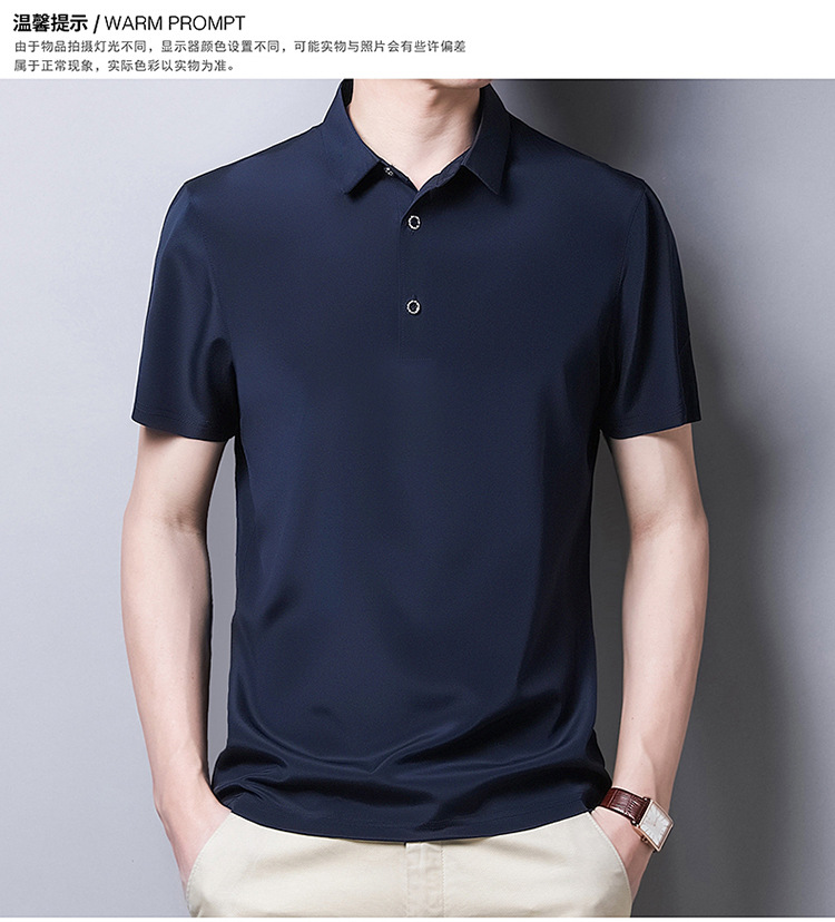 2024夏季新款中青年男士短袖T恤桑蚕丝纯色翻领半袖丝绸体恤衫潮