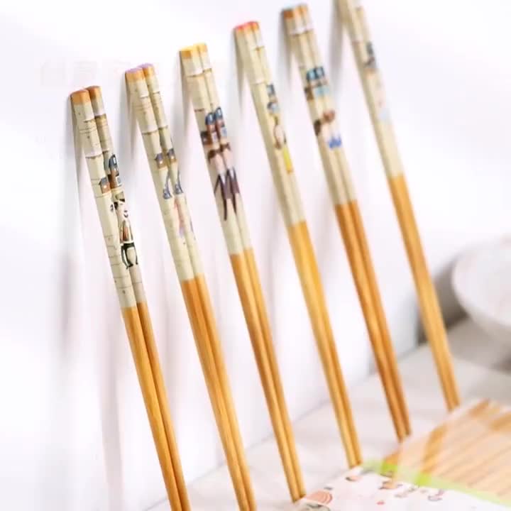 双枪筷子家用6双套装实竹筷无漆无蜡创意家庭健康分食筷