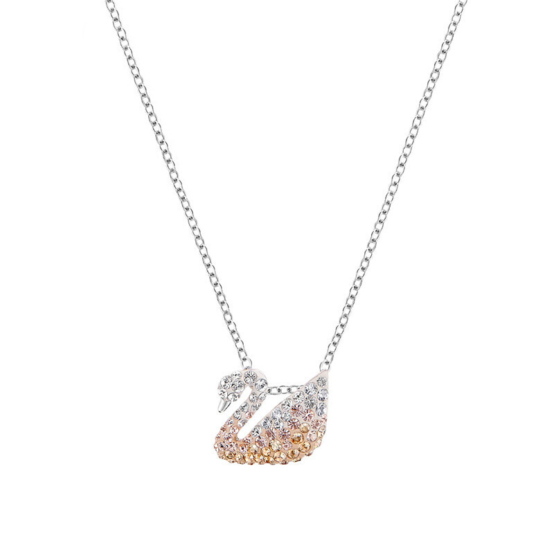 施家纯香槟粉红蓝调玫瑰金渐变黑白大天鹅锁骨项链小红书抖音同款
