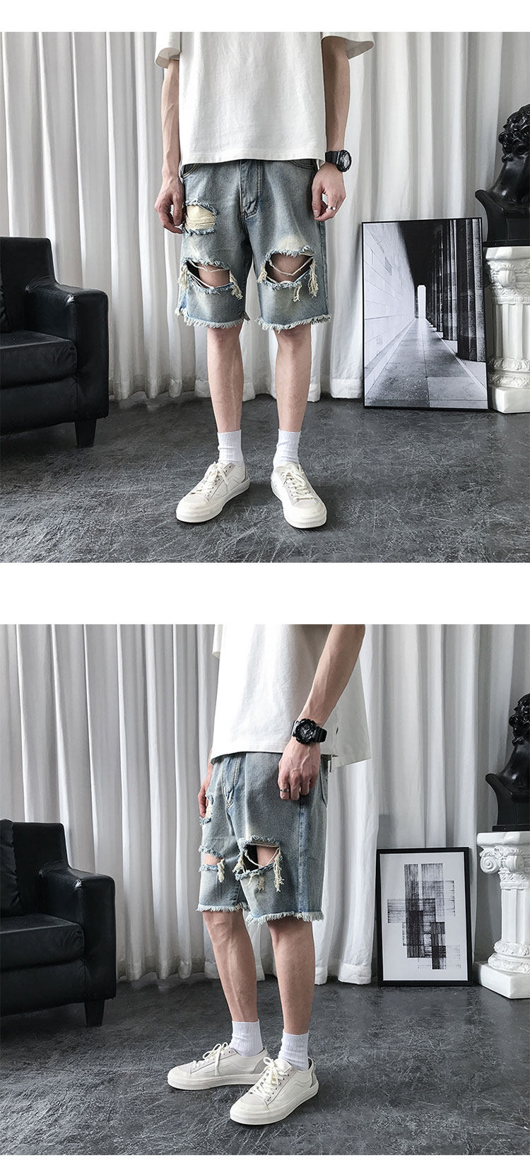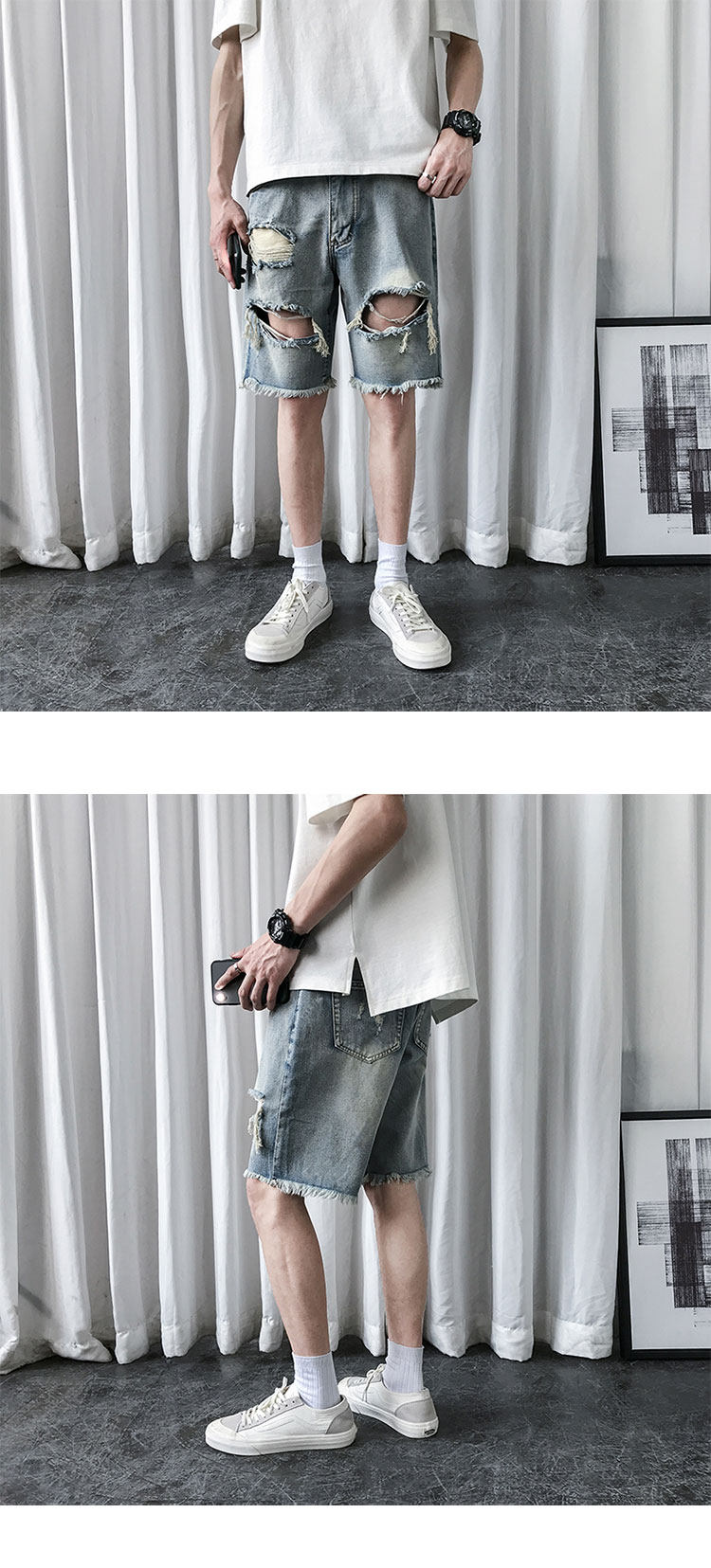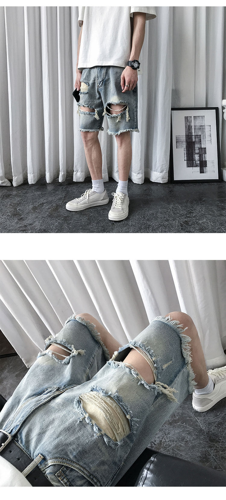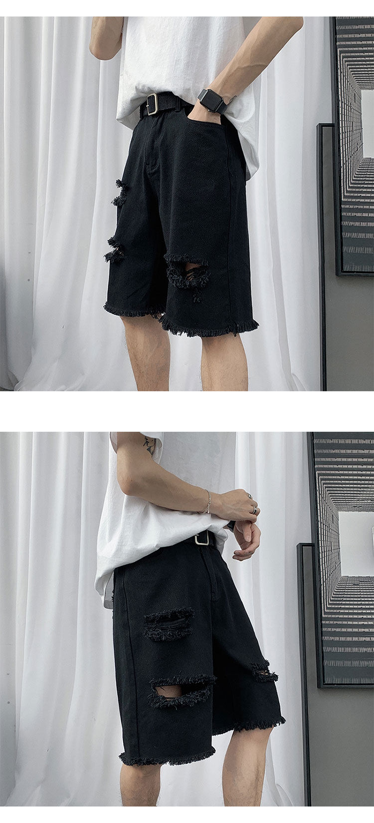破洞牛仔短裤男韩版潮流新款宽松休闲五分裤港风帅气百搭潮牌中裤