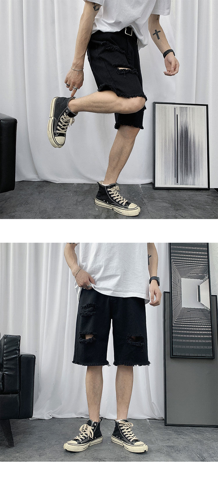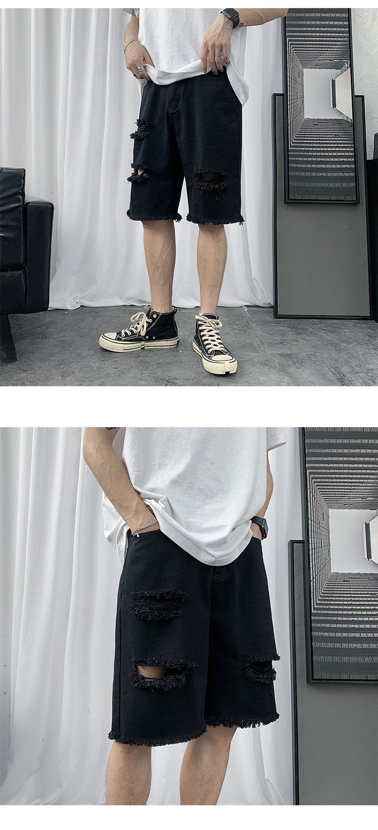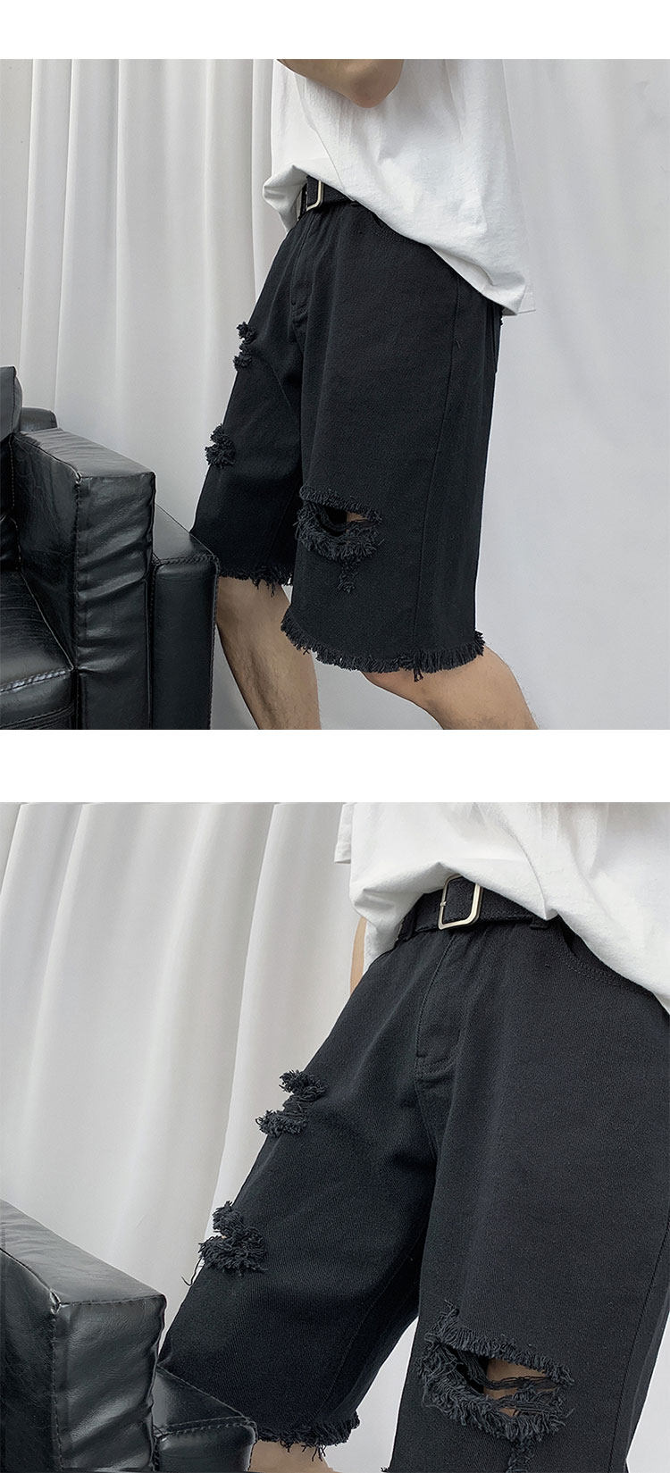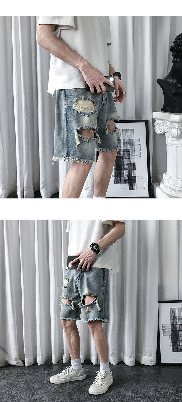 破洞牛仔短裤男韩版潮流新款宽松休闲五分裤港风帅气百搭潮牌中裤