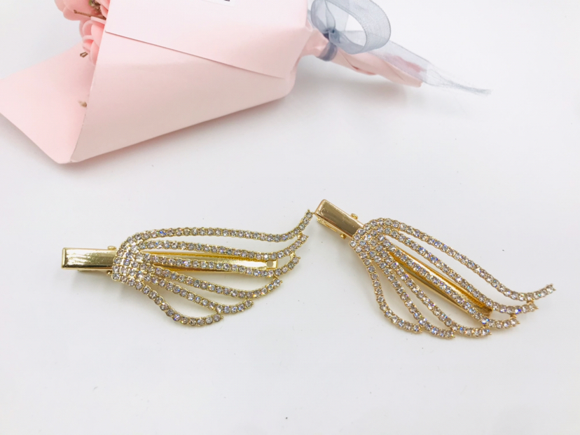 翅膀多水钻发夹简约气质少女边夹刘海夹碎发夹子头饰压夹发卡