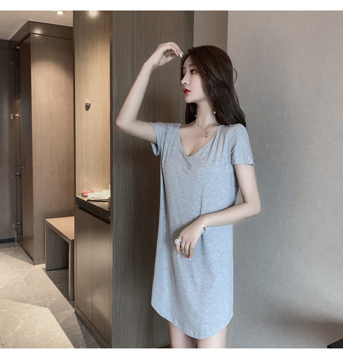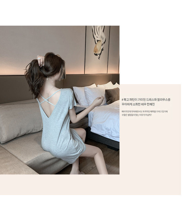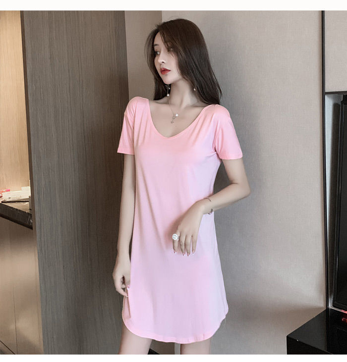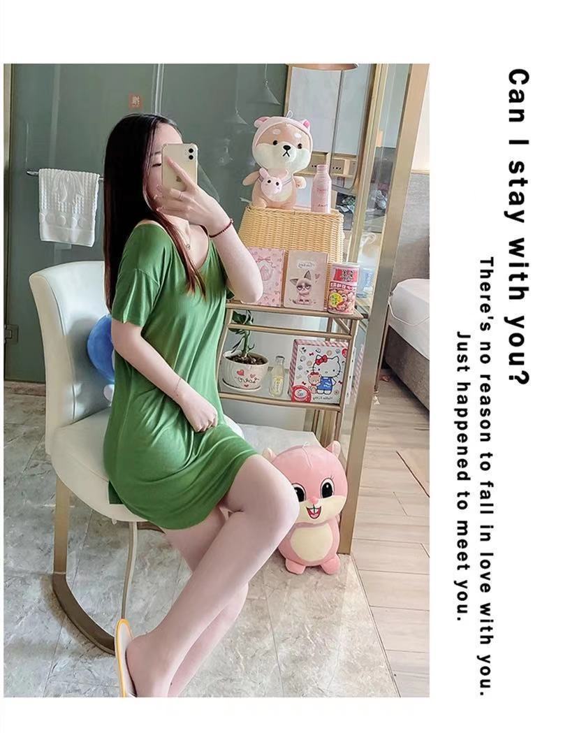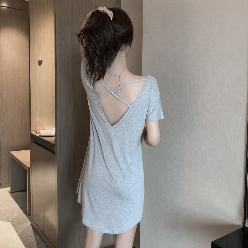 一件代发睡裙女夏季韩版性感睡衣女中长款短袖露肩吊带裙可外穿