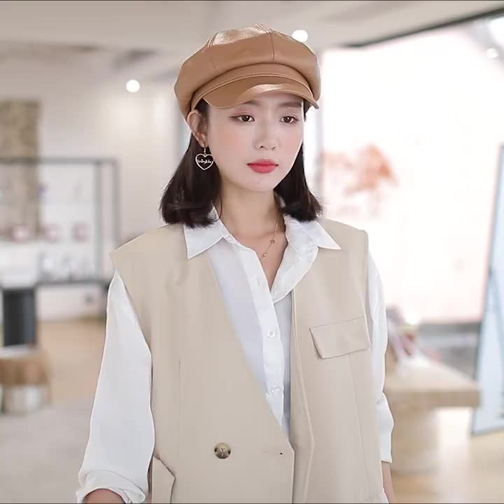 网红皮质贝雷帽子女秋冬韩版学生可爱百搭圆脸英伦风八角帽南瓜帽