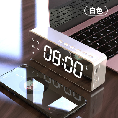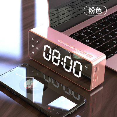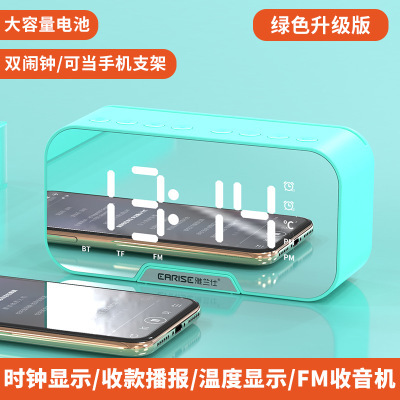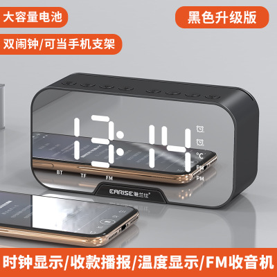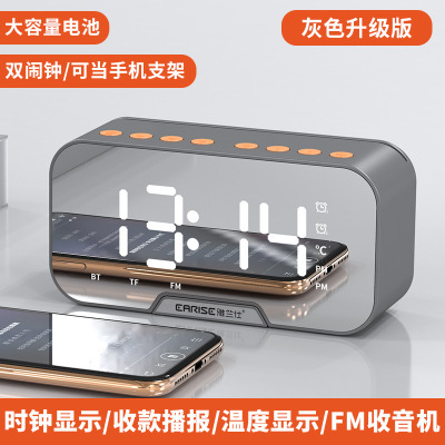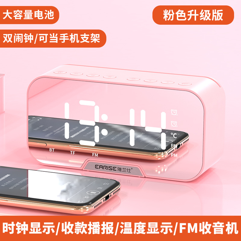 雅兰仕镜面时钟无线蓝牙音箱礼品便携式迷你语音播报闹钟音响插卡