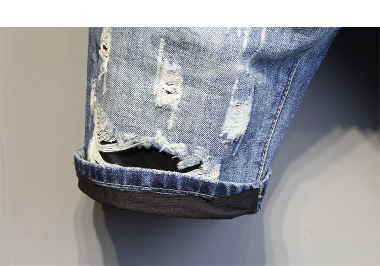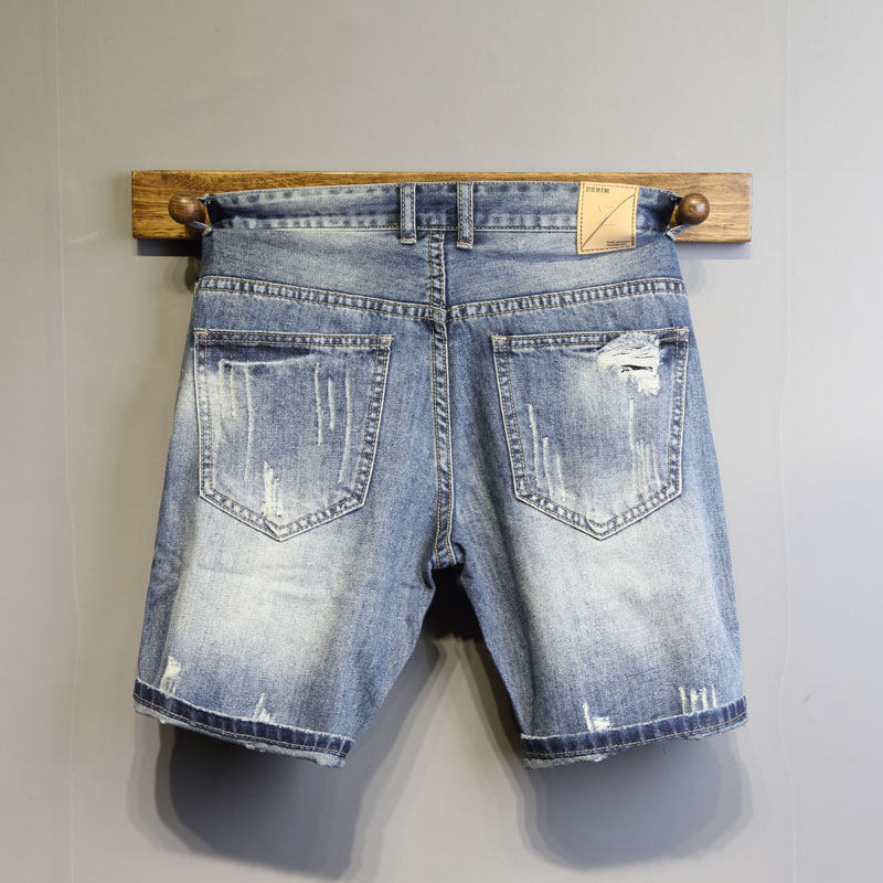 短裤男 潮流韩版个性刮烂牛仔裤修身青年19夏季新款牛仔5五分裤潮