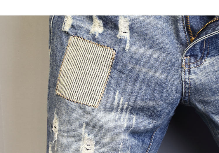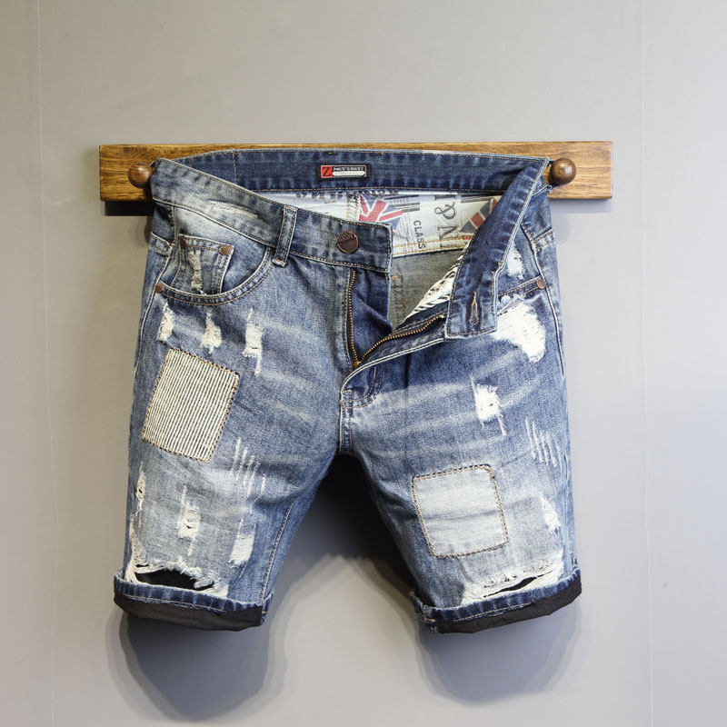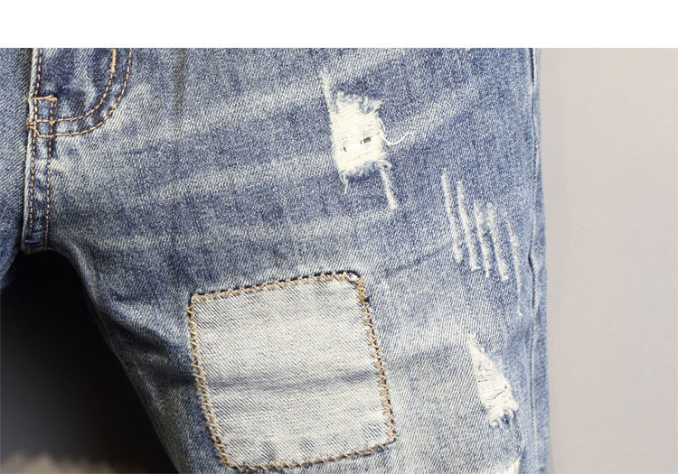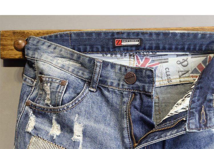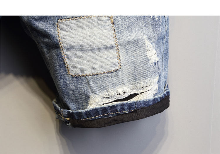 韩国潮流个性针缝补丁修身牛仔短裤 每个男人都需要一件