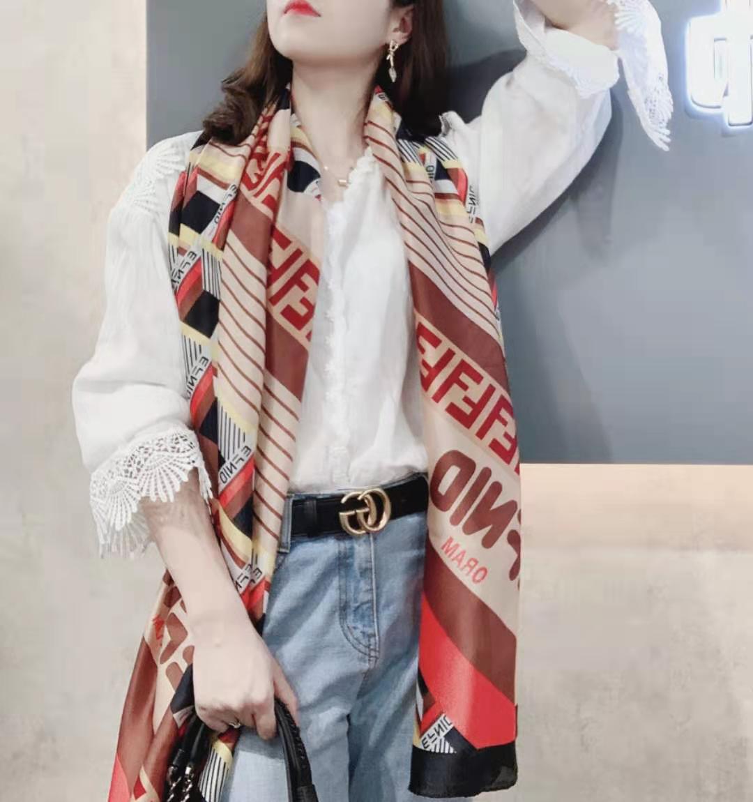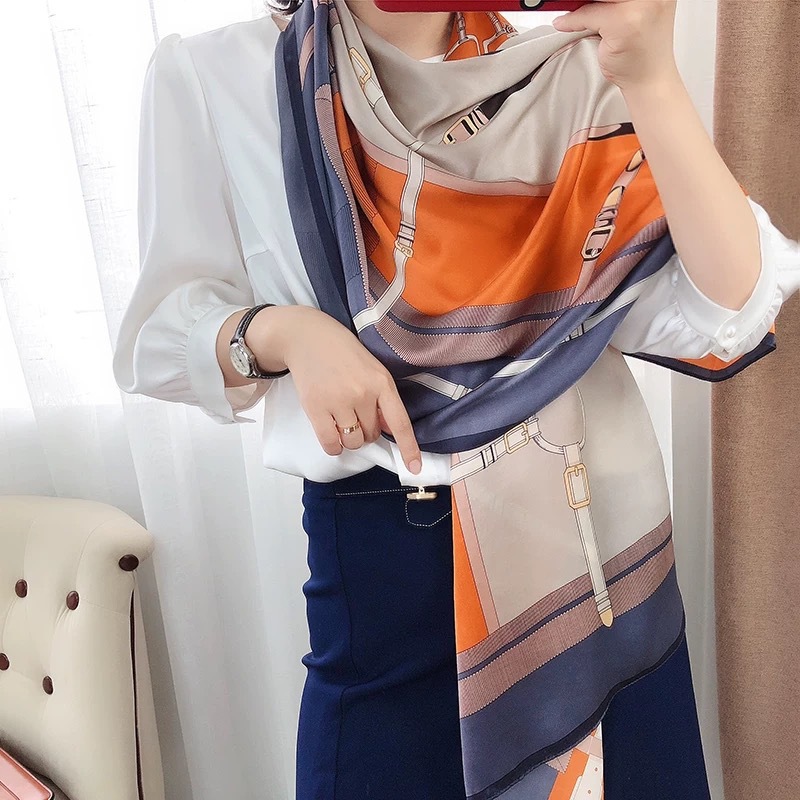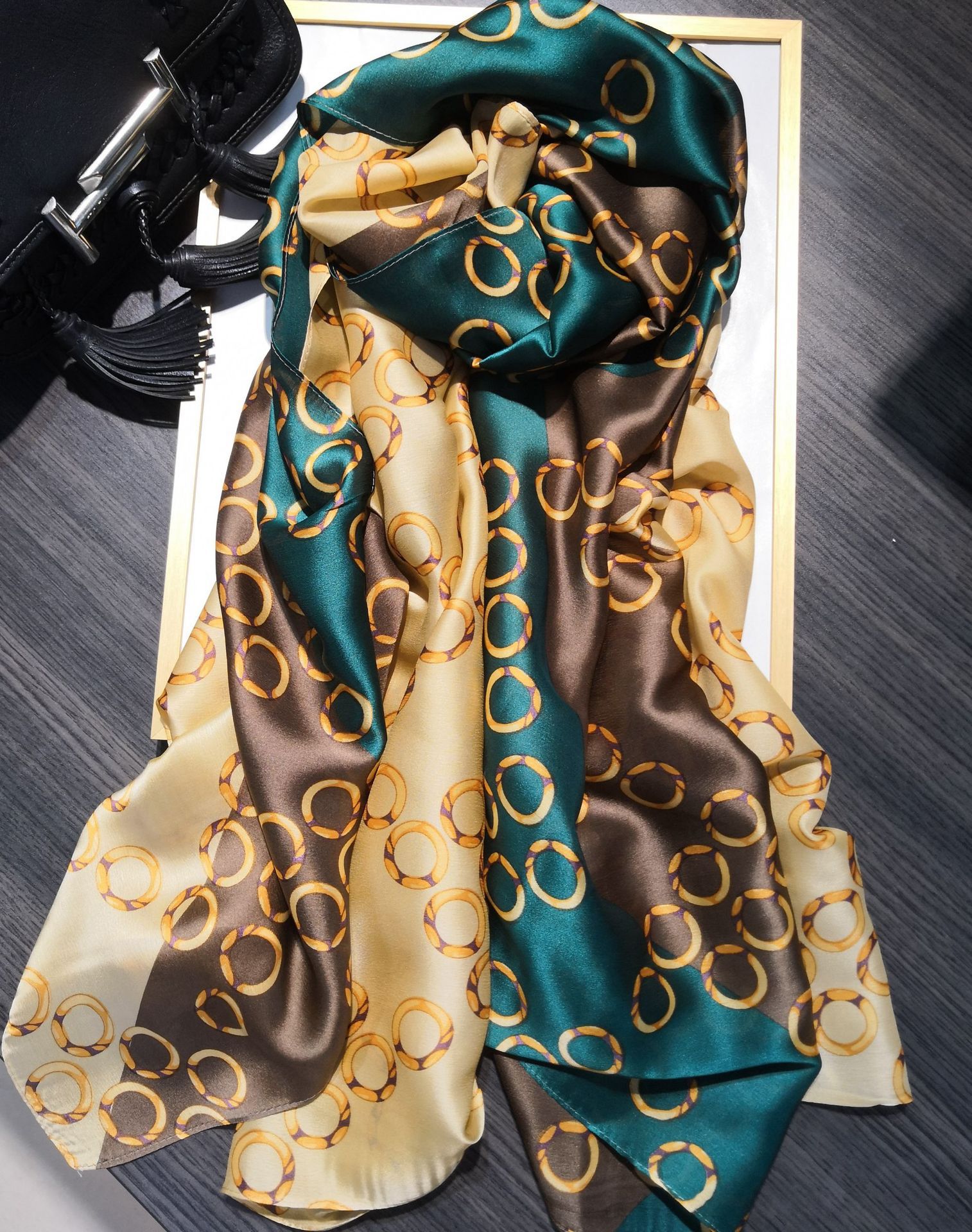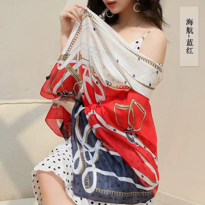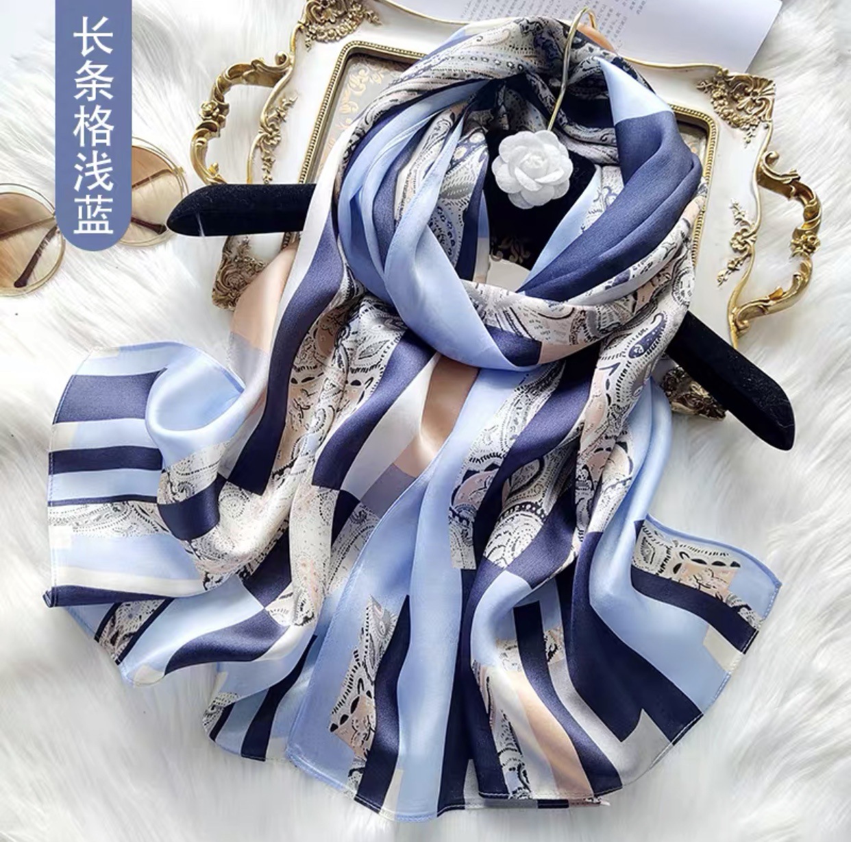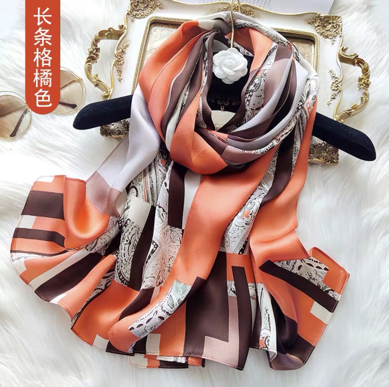 韩版时尚网红同款印花丝巾防晒围巾仿真丝装饰丝巾女批发