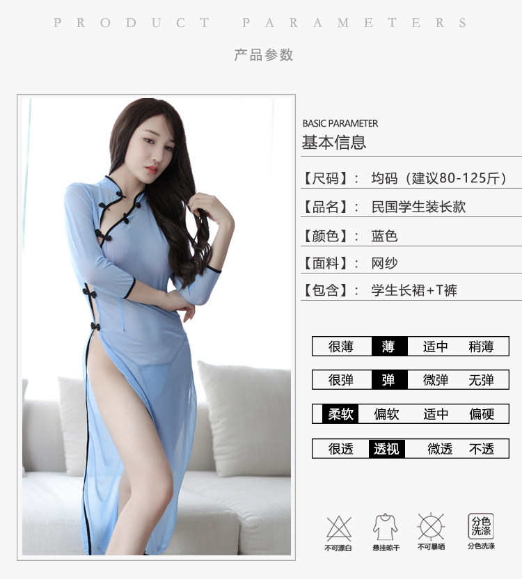 厂家直销女式内衣女透视侧叉制服民国学生装性感旗袍睡裙代发9034