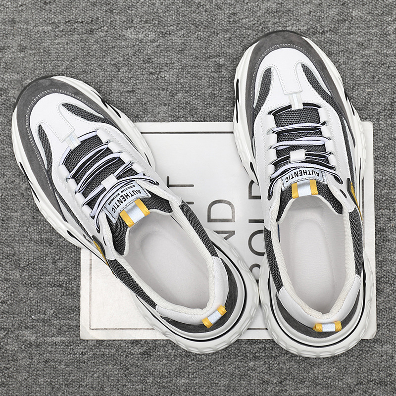 ins超火男鞋真皮时尚休闲潮鞋秋季韩版男运动鞋厚底透气网面