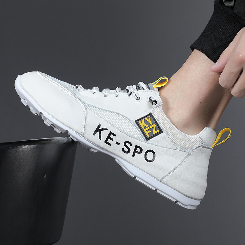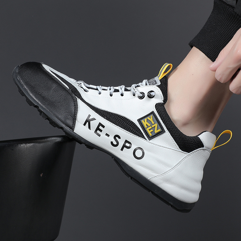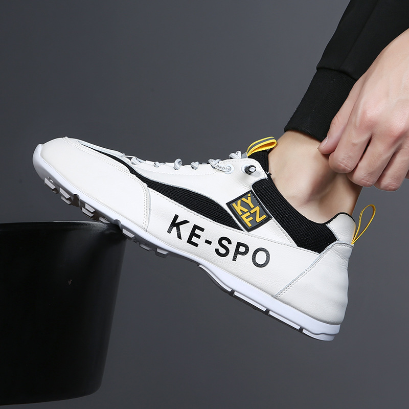 2024夏季新款透气男鞋真皮休闲网鞋ins老爹鞋厚底鞋小白鞋男