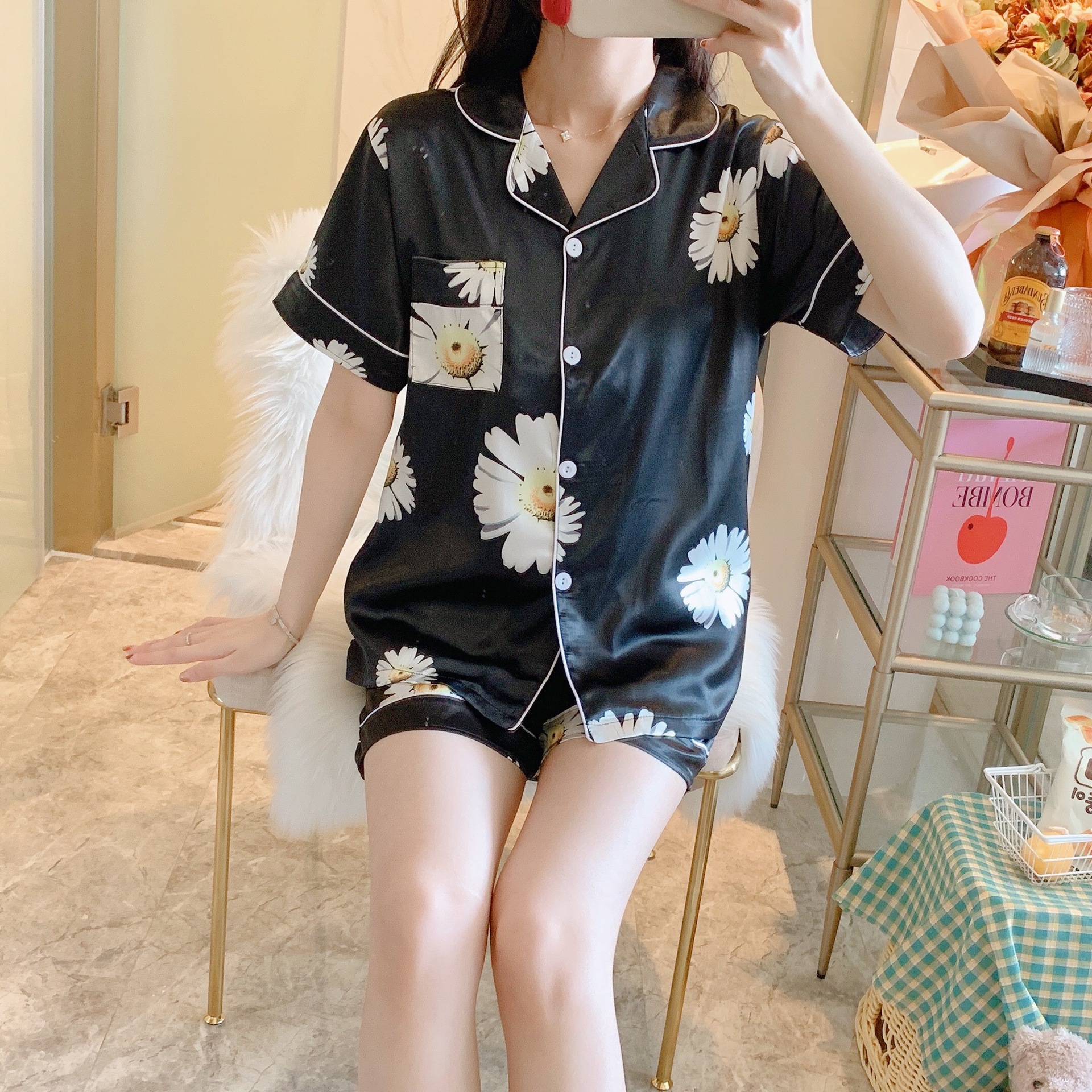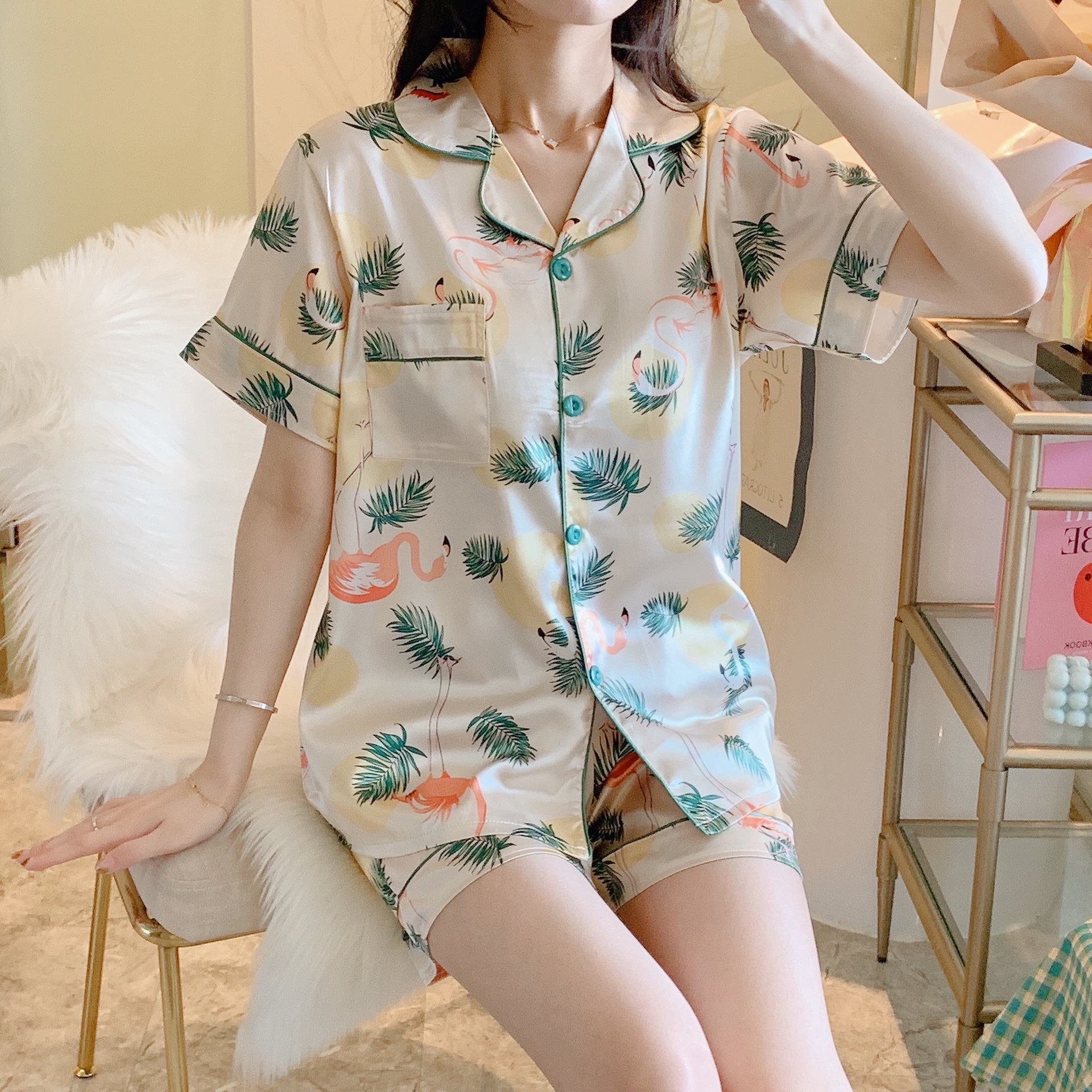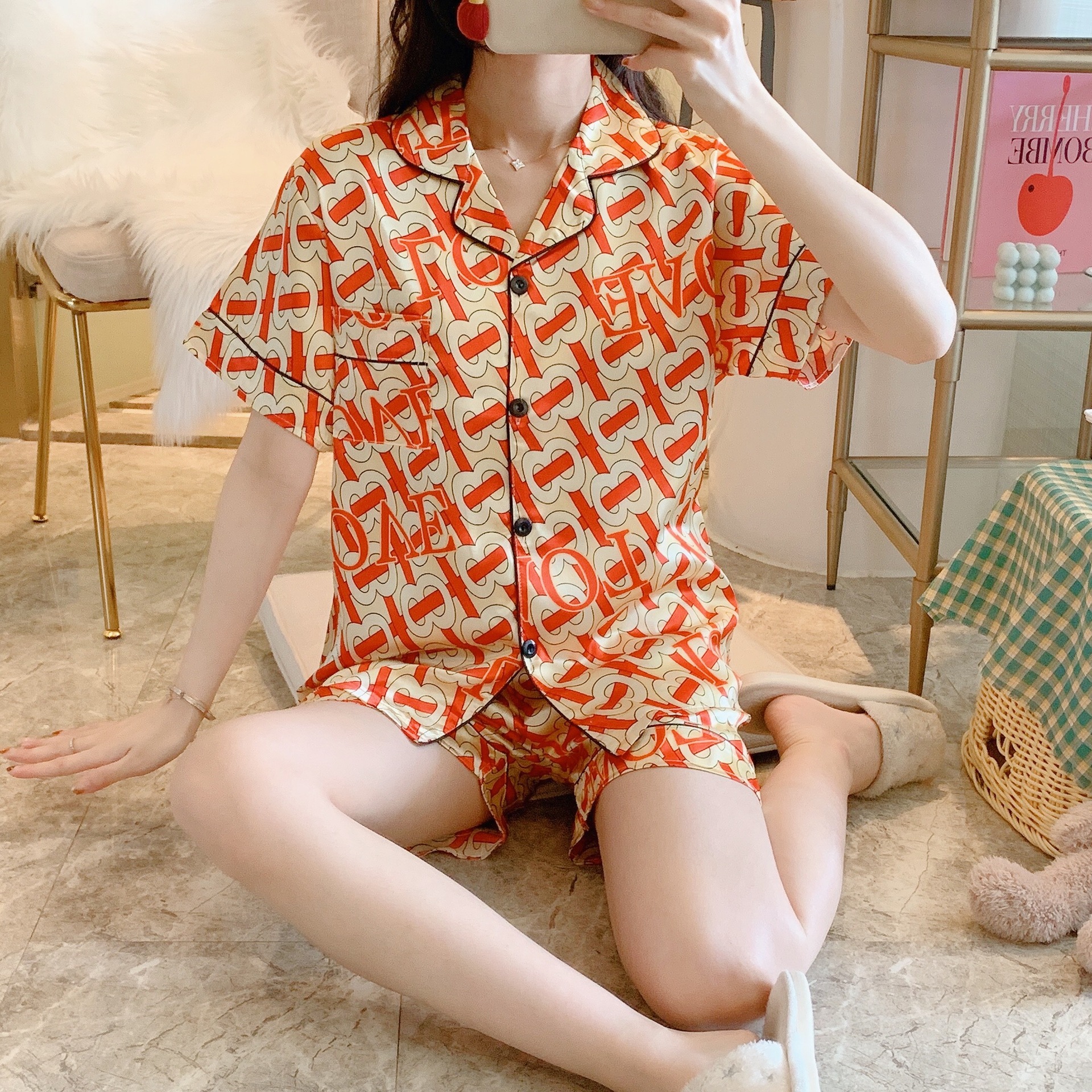 睡衣女夏季冰丝韩版性感开衫短袖学生可爱家居服夏天女士甜美套装