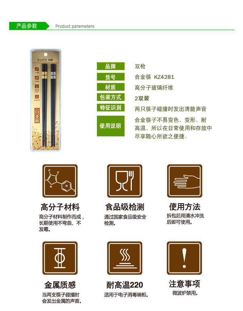 双枪合金筷子家用耐高温情侣合金筷防霉筷子两双装防滑食品级筷子