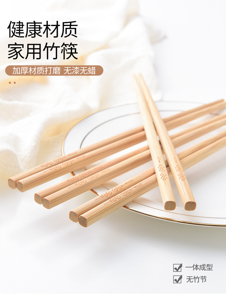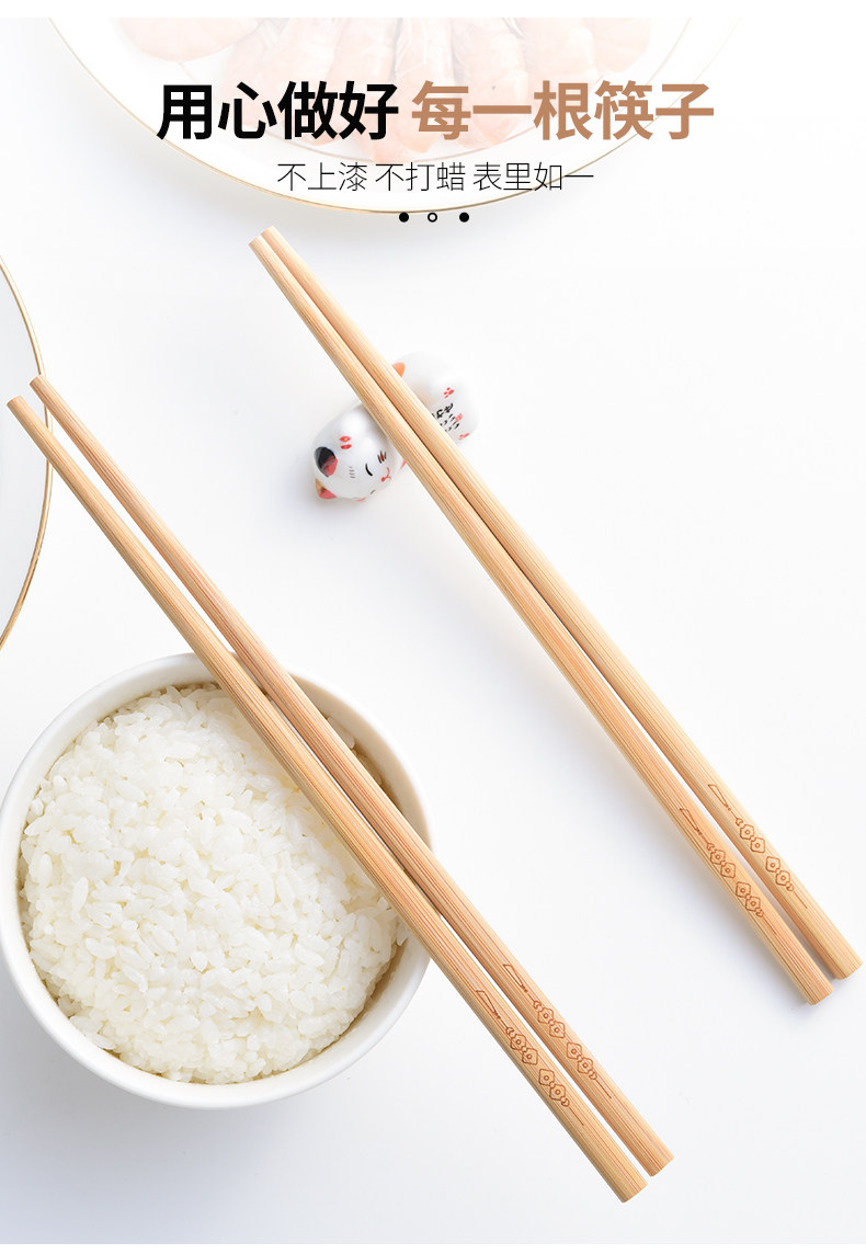 双枪筷子家用儿童天然竹筷子木筷子无漆无蜡家庭装防滑快子楠竹