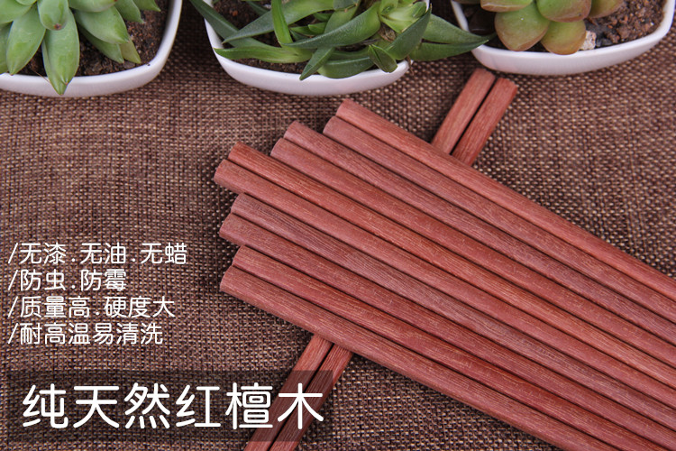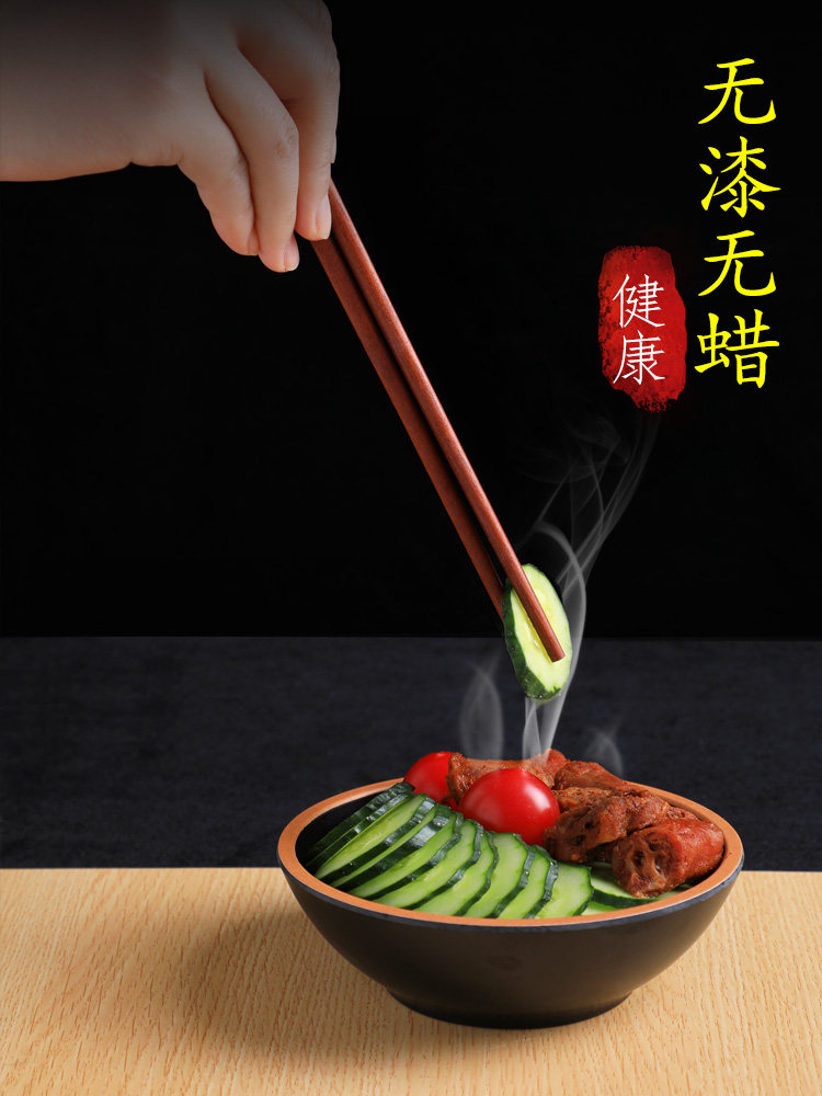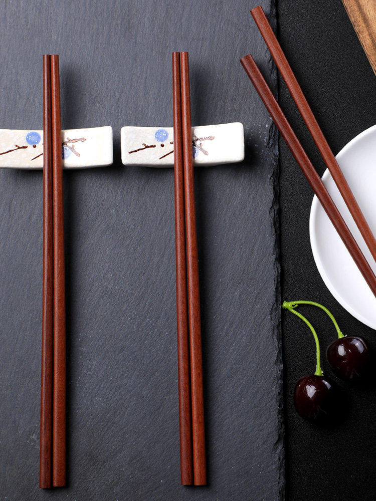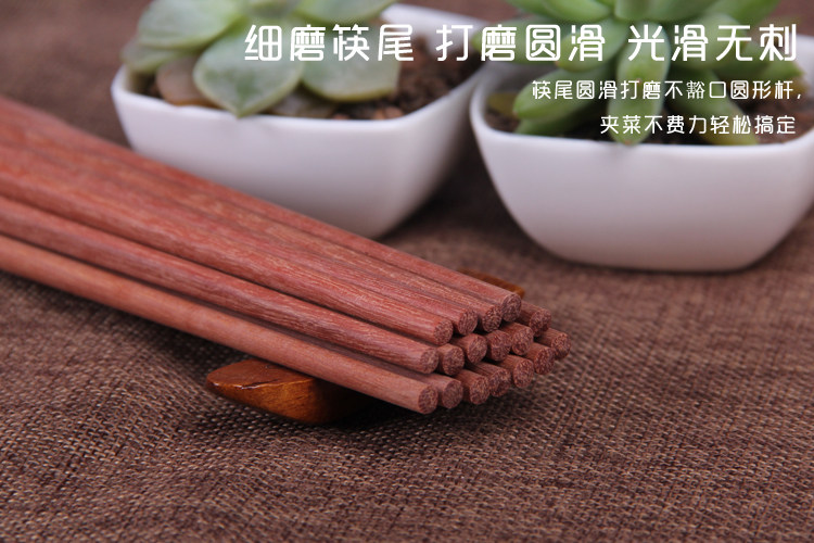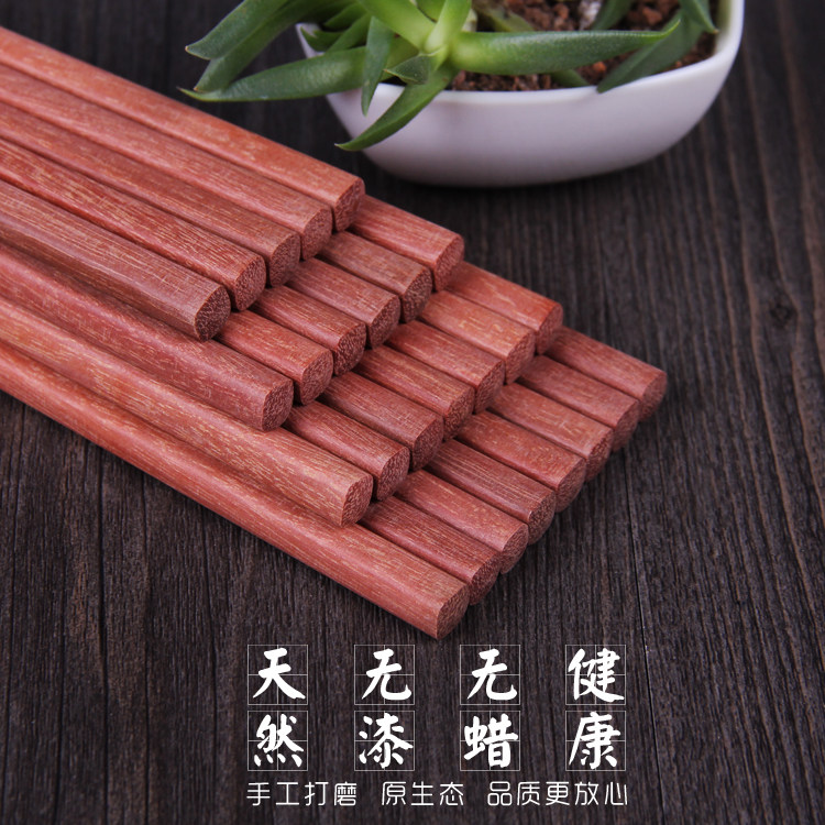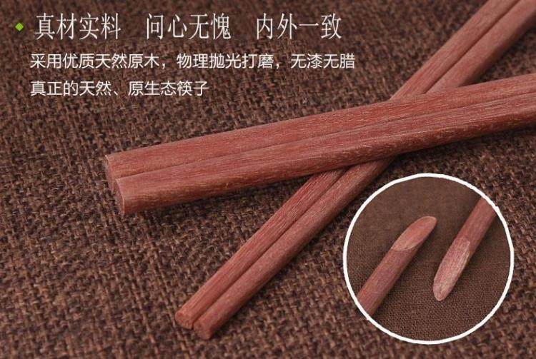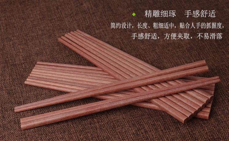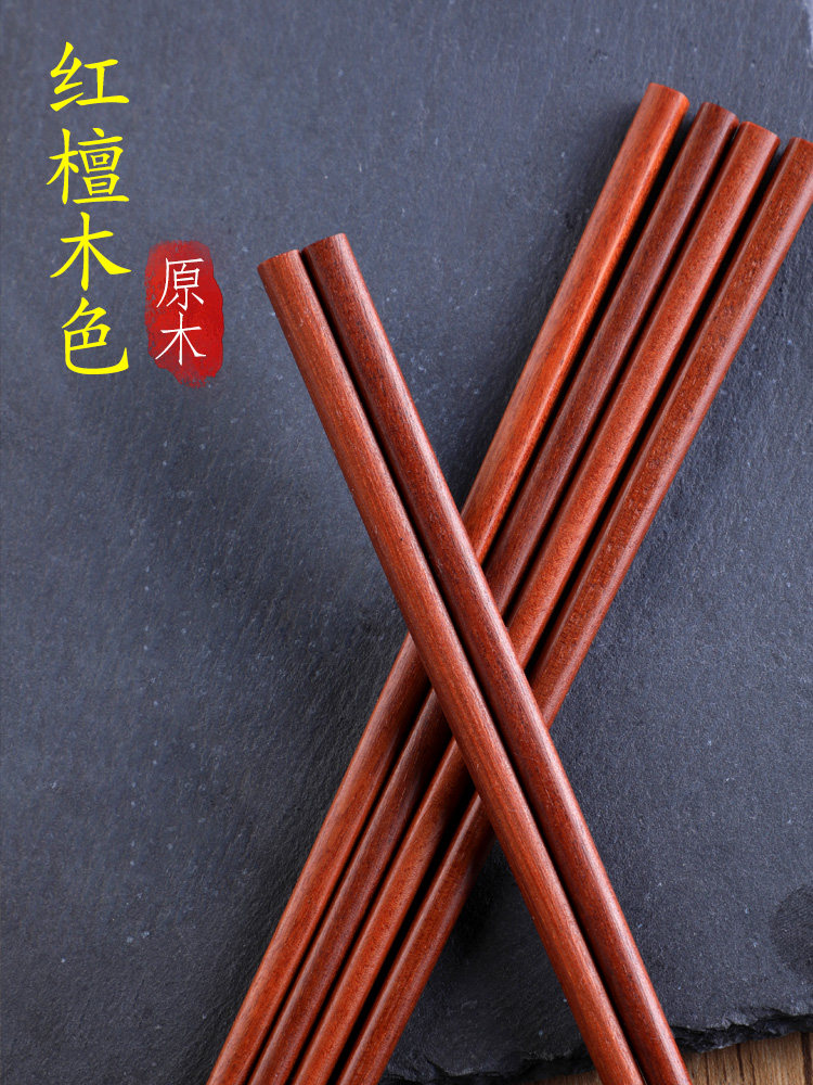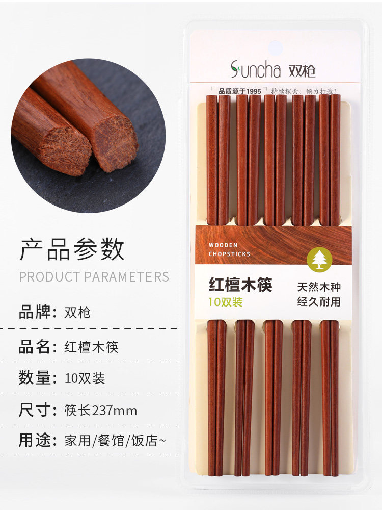 双枪筷子红檀木筷子家用红木筷酒店实木餐具10双装