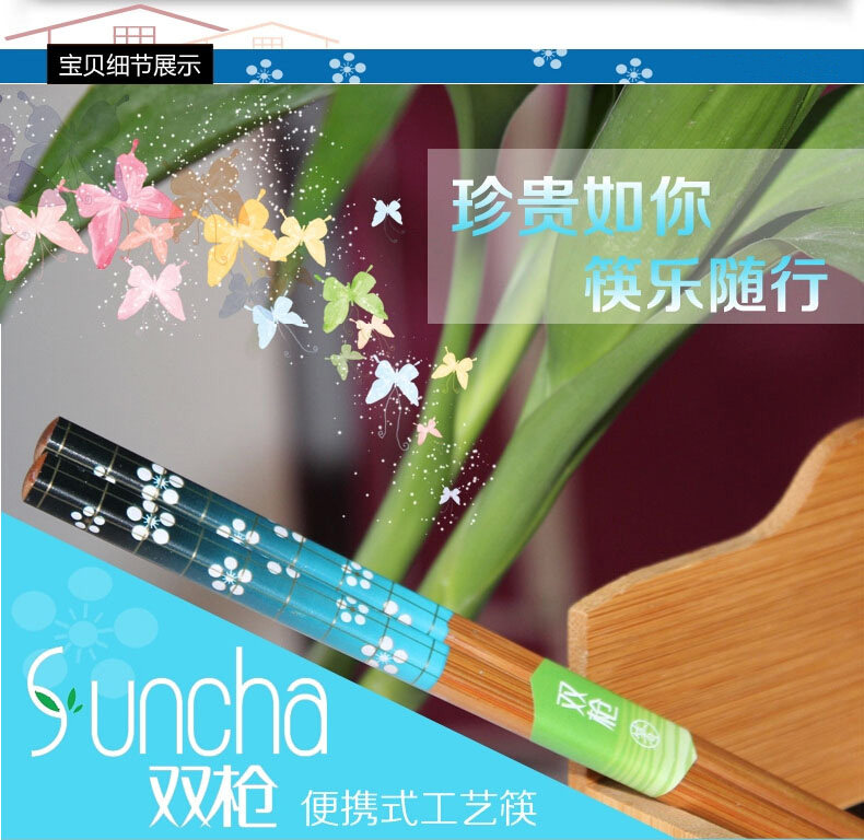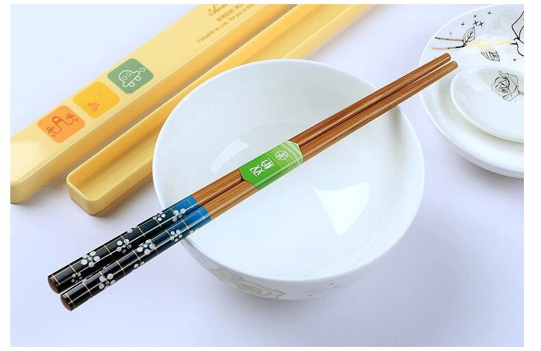 双枪筷子日式单双竹筷子套装卡通风格便携筷单身上班族旅行筷