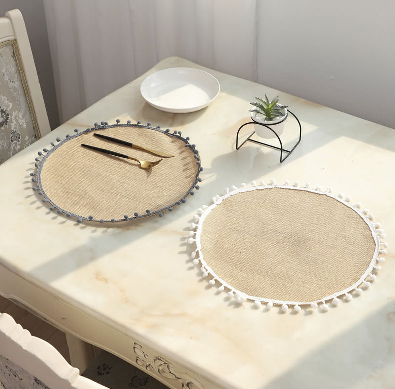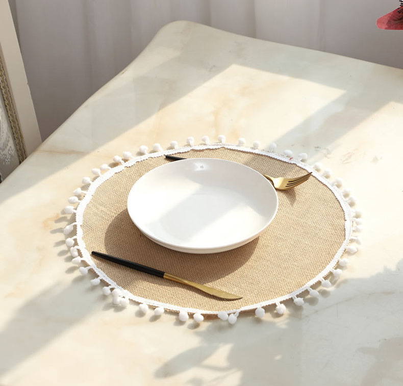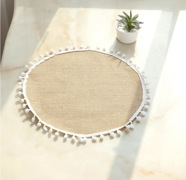 餐具摆盘带毛球圆形工艺黄麻餐垫杯垫防水桌垫1261
