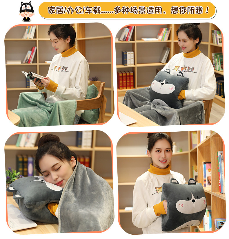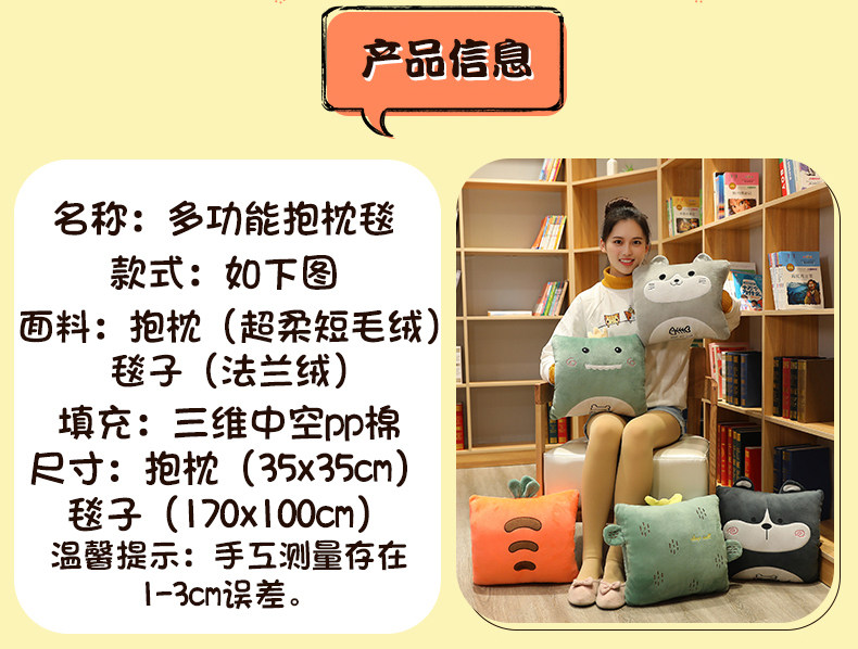 抱枕被子两用办公室靠枕午睡神器枕头毛毯三合一汽车内毯子靠背垫