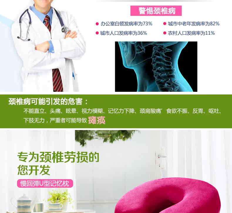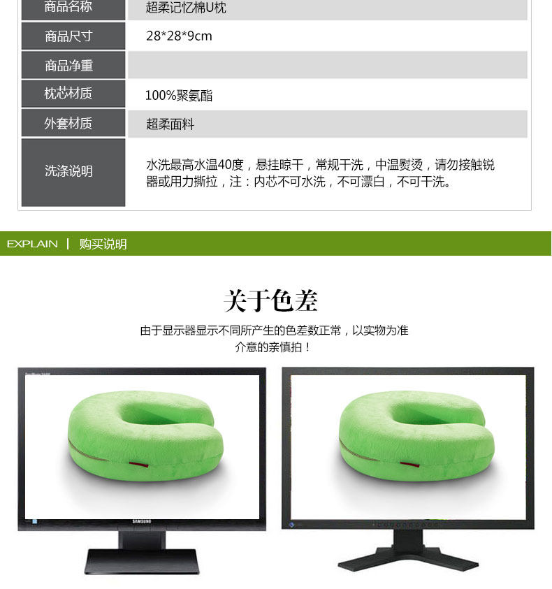 YL107新款记忆棉U型枕颈椎保健枕 旅行小u形枕办公室短毛绒午睡枕
