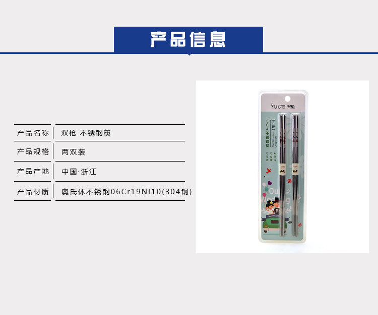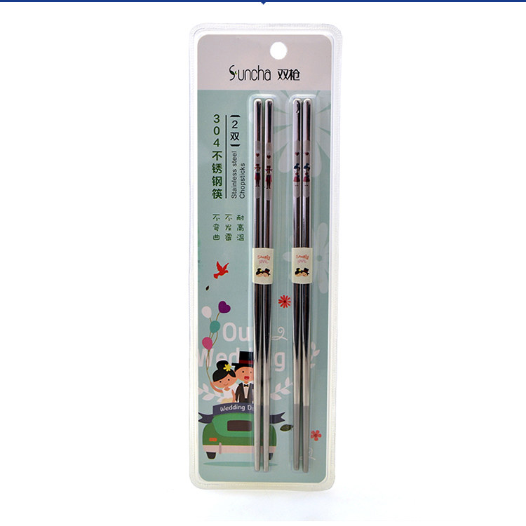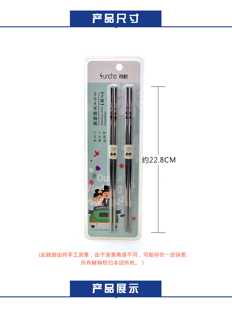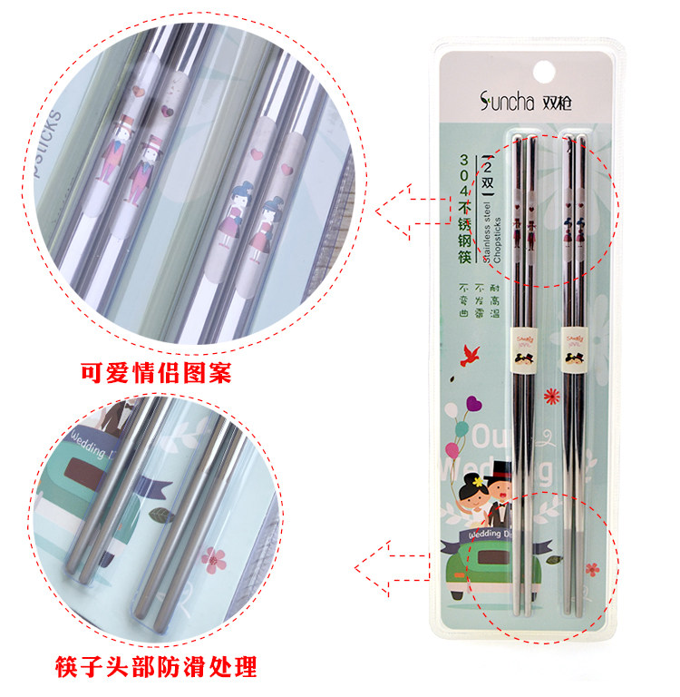 双枪筷子不锈钢筷子防滑筷子韩式不锈钢筷子情侣筷子2双装KZ3292