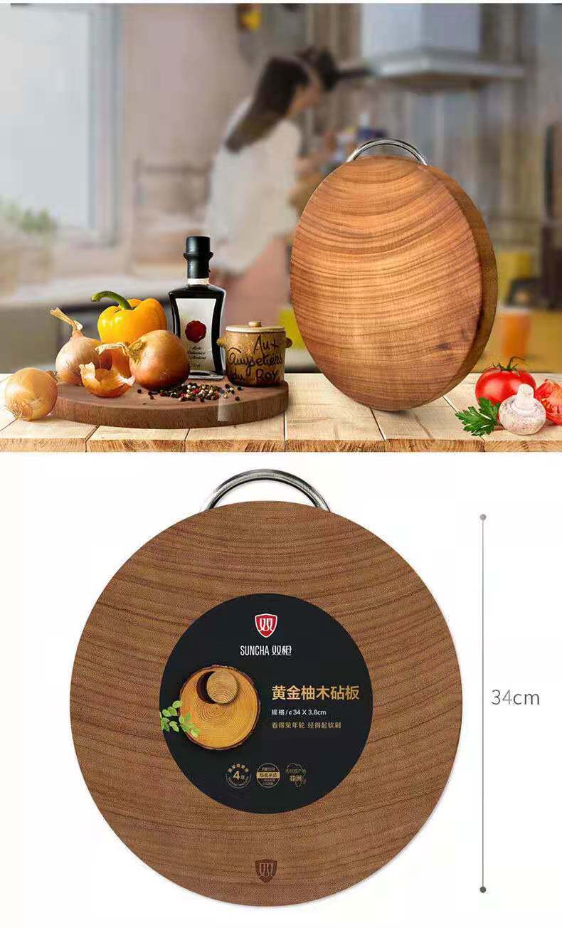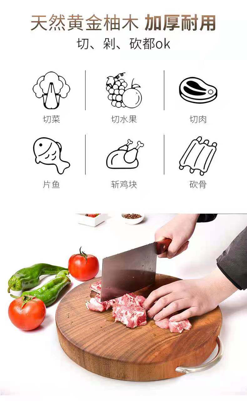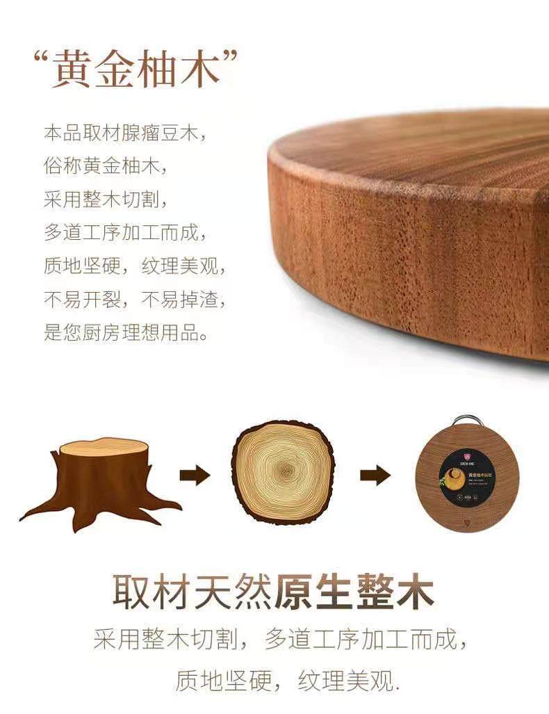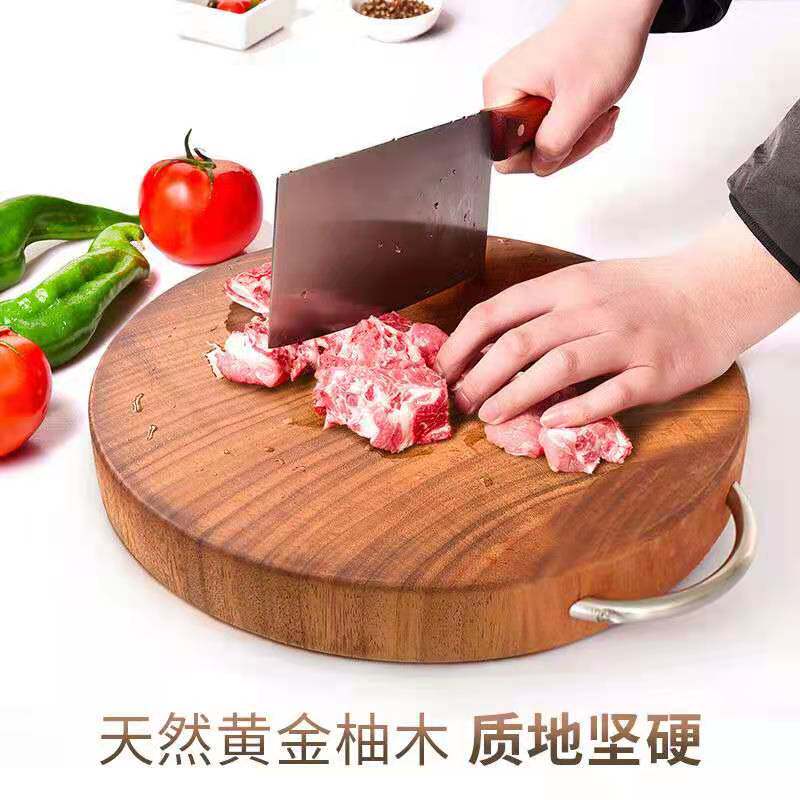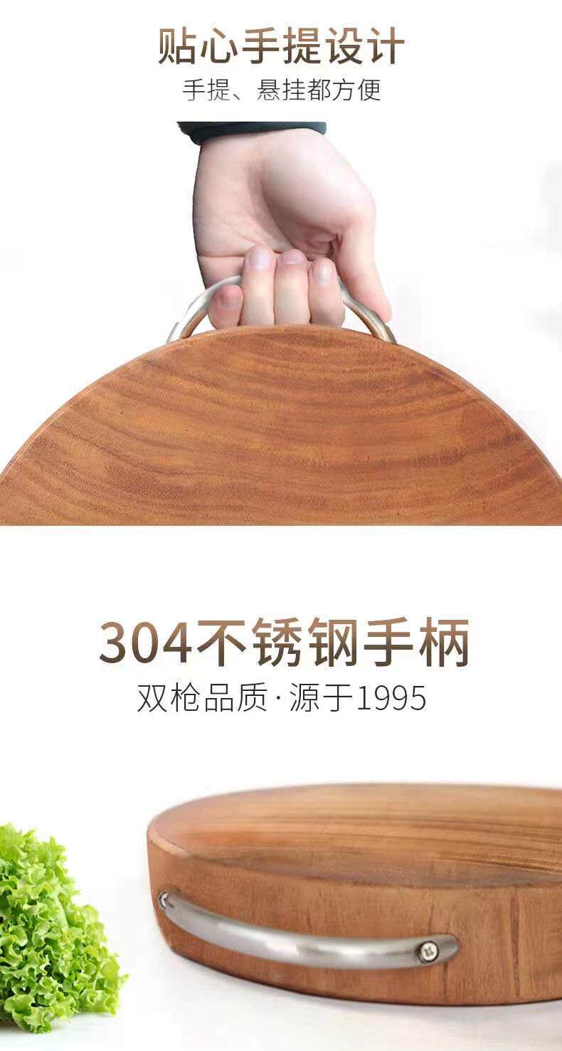 双枪砧板黄金柚木整木砧板实木菜板切菜板案板木菜墩板圆形钻板