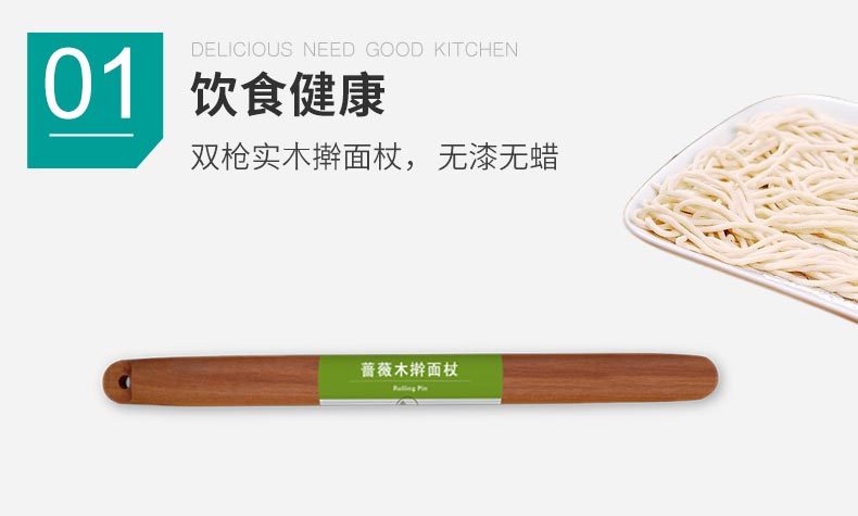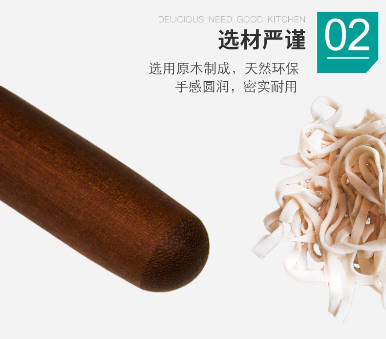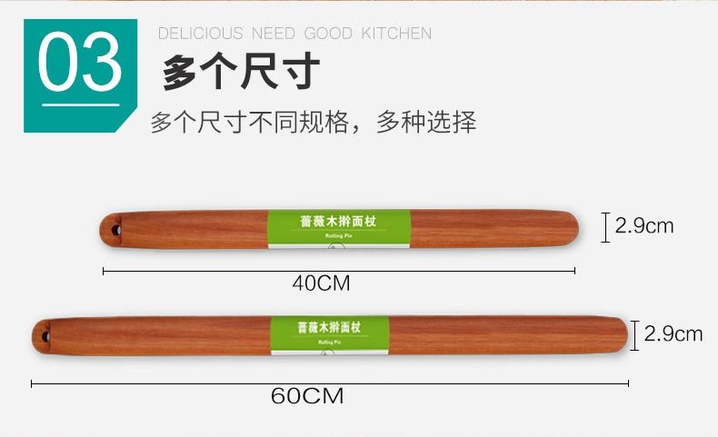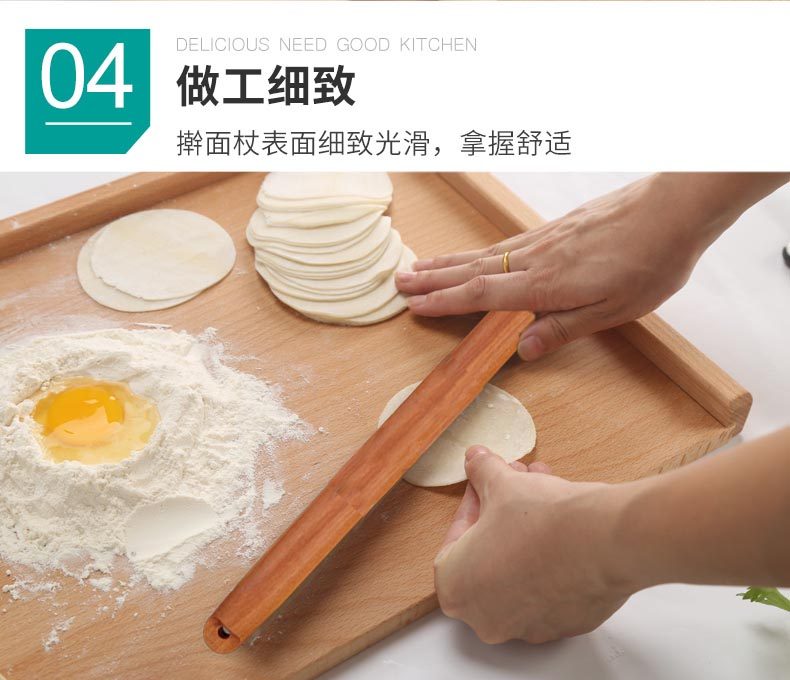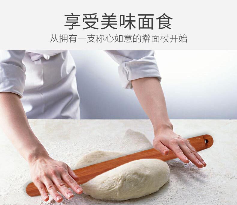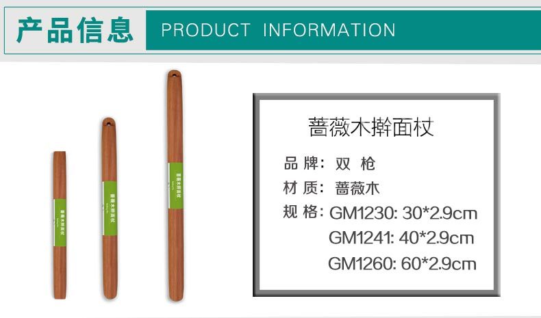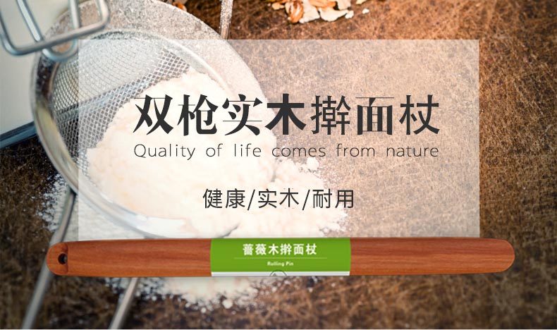 双枪蔷薇木擀面杖实木无漆家用饺子皮大号压面棍面食制作烘焙工具
