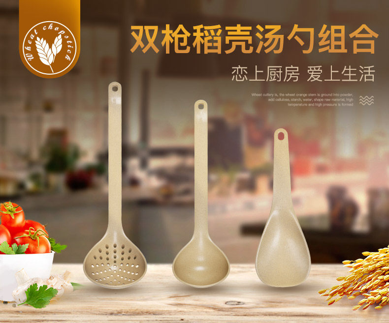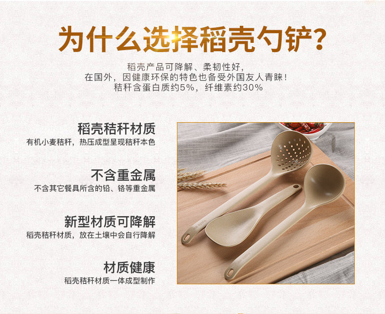 双枪漏勺稻壳汤勺饭铲舀汤勺子大号不沾火锅勺子米饭铲子套装