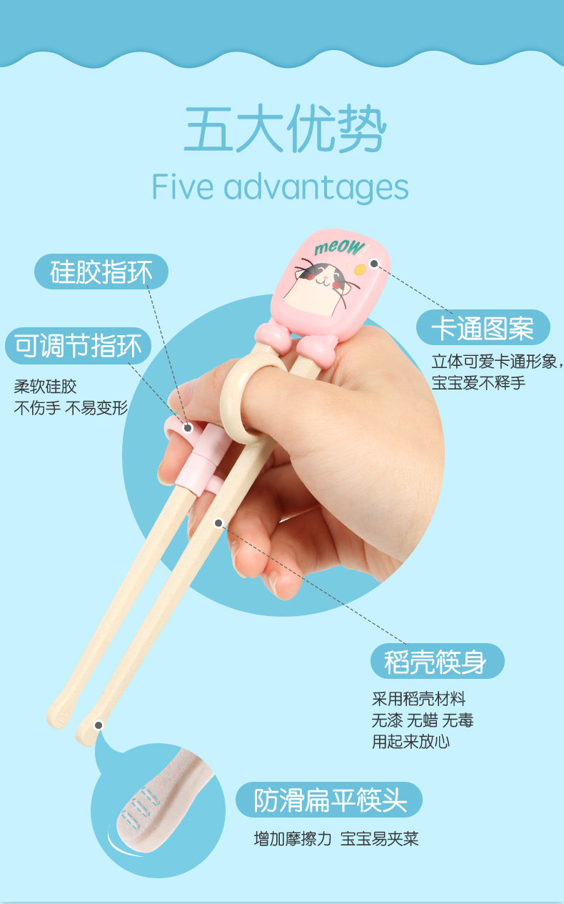 双枪筷子稻壳儿童筷子训练快宝宝吃饭学习辅助练习筷家用学习筷