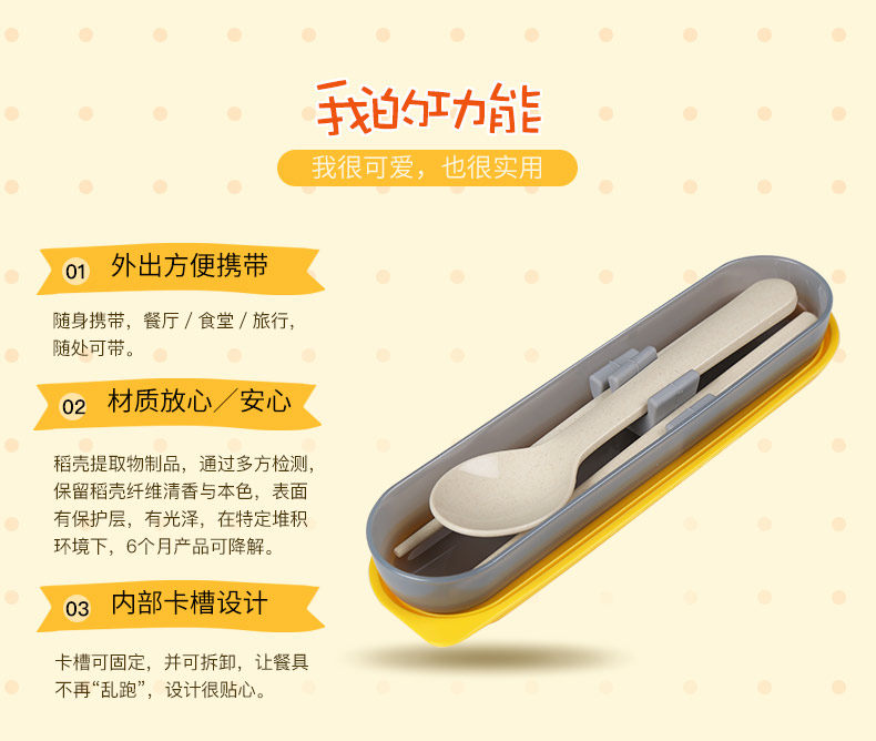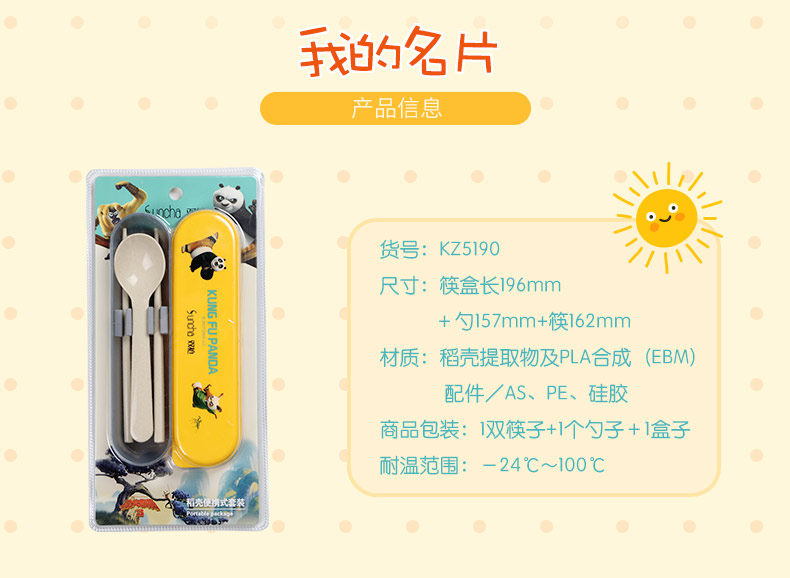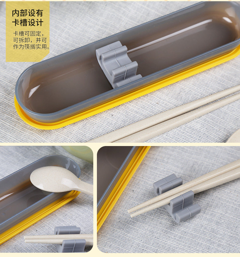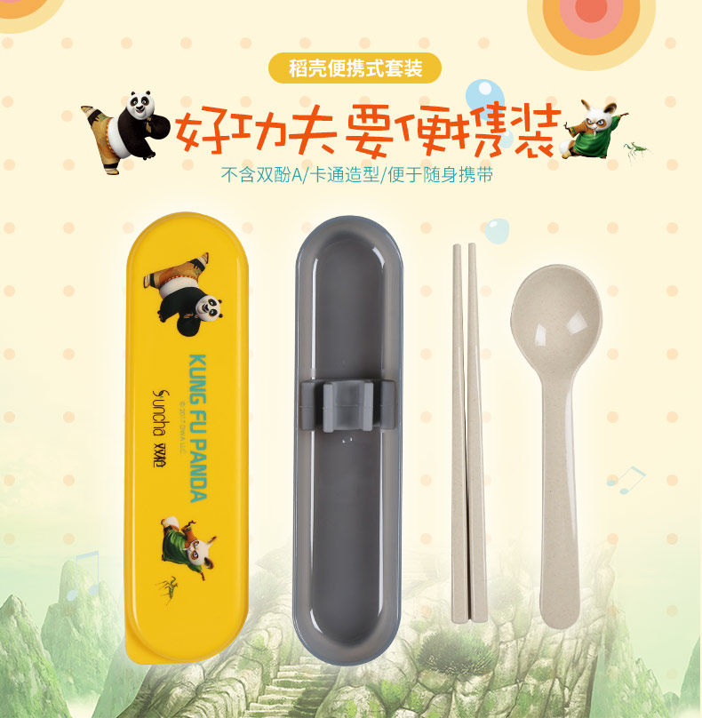 双枪稻壳便携餐具套装筷子勺子套装学生儿童旅行装两件套卡通时尚