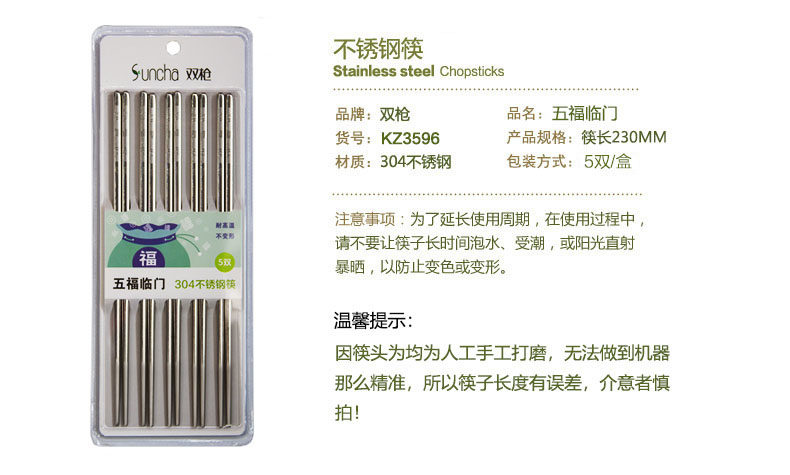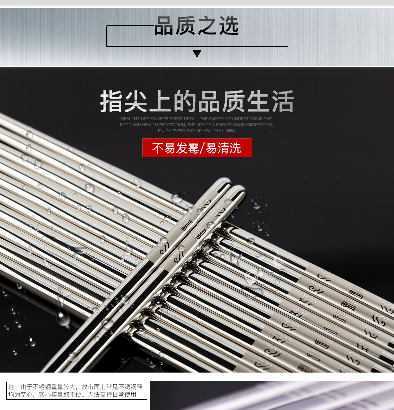双枪筷子不锈钢筷子空心防烫防霉防滑高温消毒餐具 家用酒店筷子