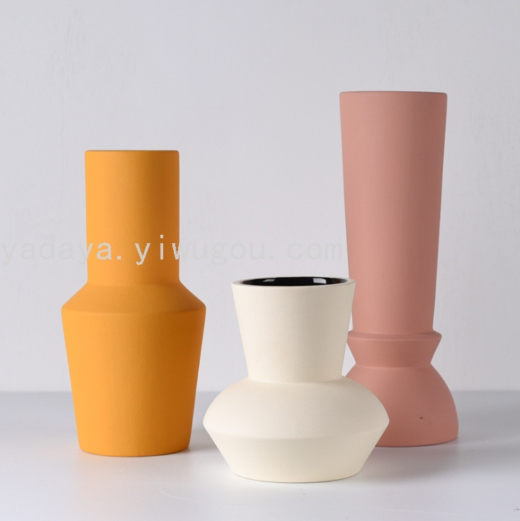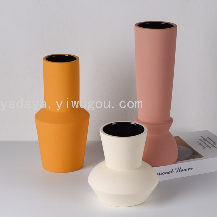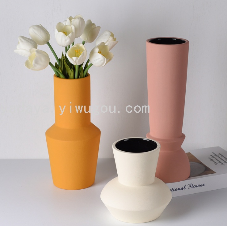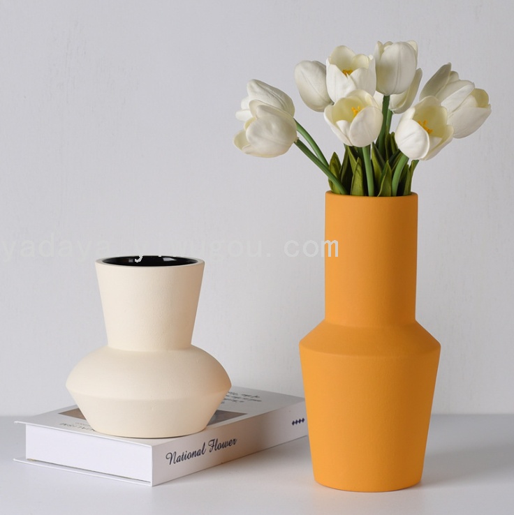 现代简约莫兰迪色广口陶瓷花瓶摆件鲜花干花插花器样板间家居软装