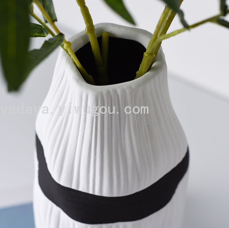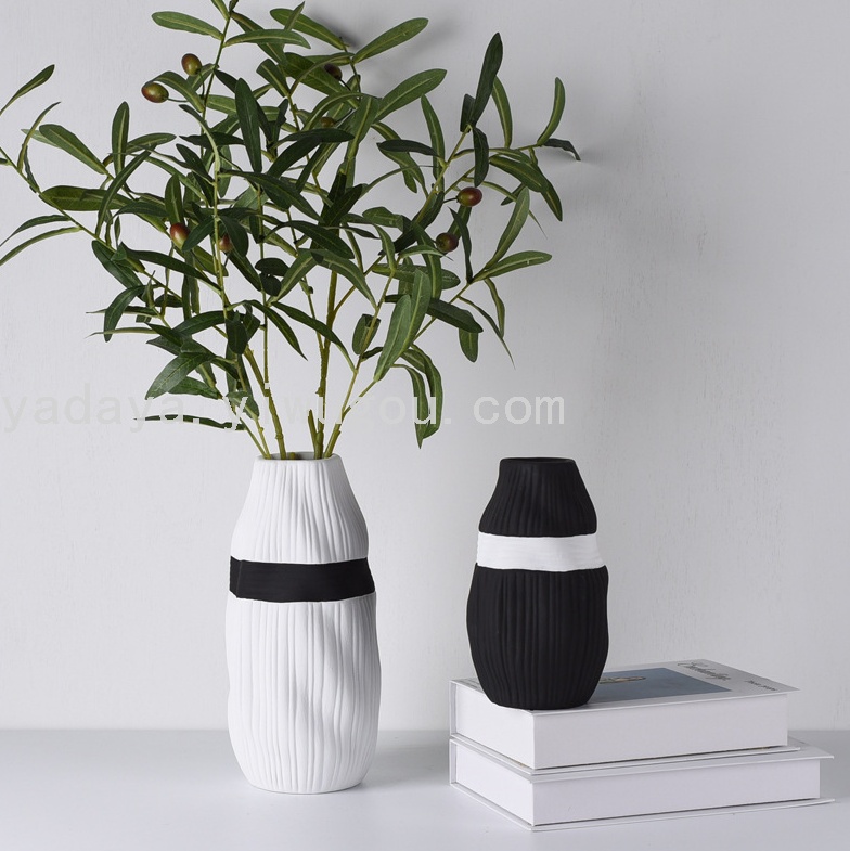 北欧风创意黑白横纹简约桌面陶瓷花瓶客厅电视柜餐桌插花干花摆件