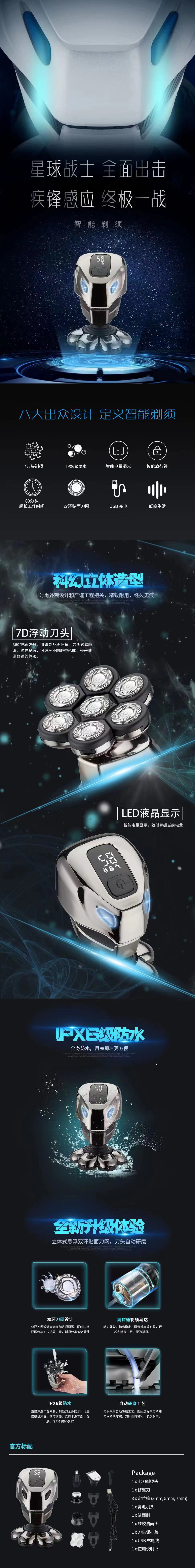 7D剃须刀usb充电数字显示全身水洗光头机剃须理光头
