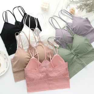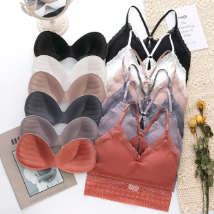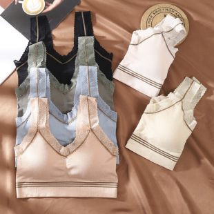 冰丝无痕螺纹裹胸打底内衣抹胸美背蕾丝女内搭运动背心