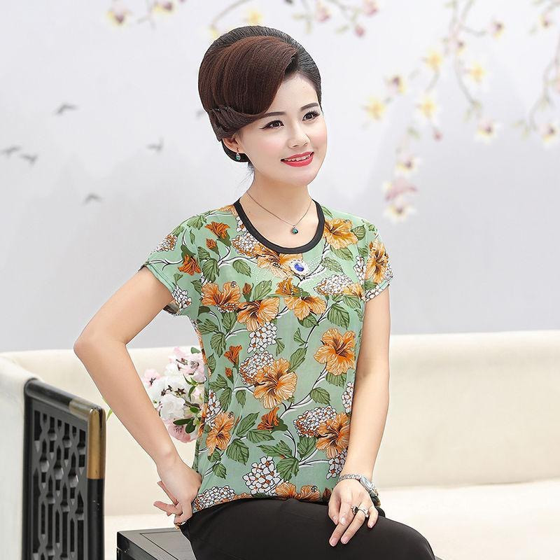 中老年妈妈装夏季冰丝短袖T恤女装碎花打底衫批发摆摊地摊赶集
