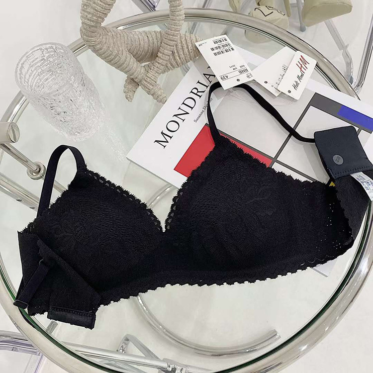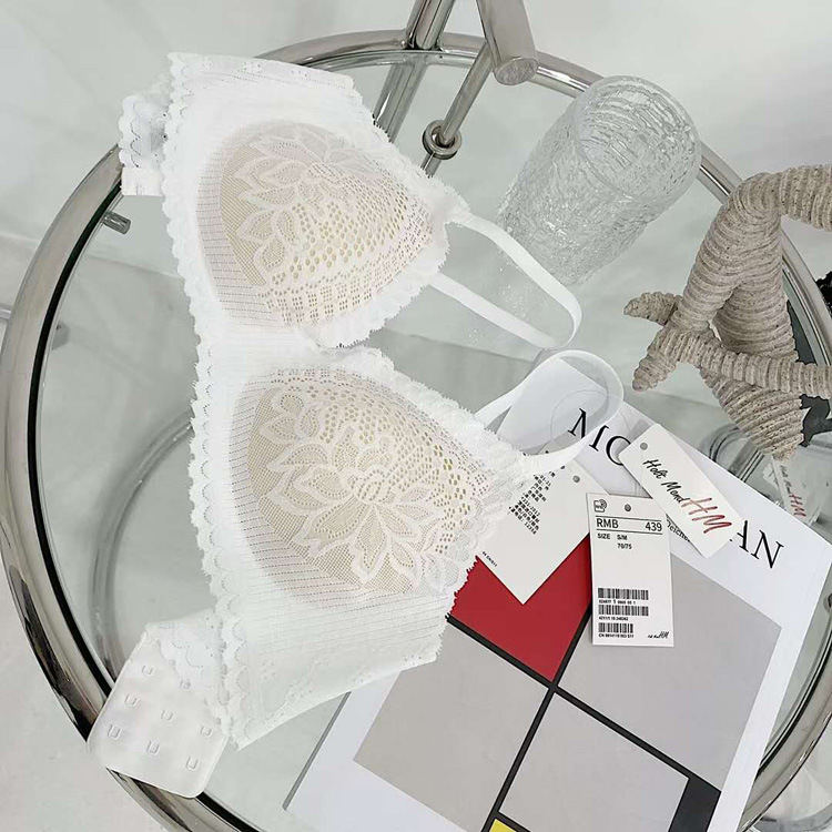 HM乳胶内衣全蕾丝吊带女无痕白色小胸内搭无钢圈聚拢美背文胸